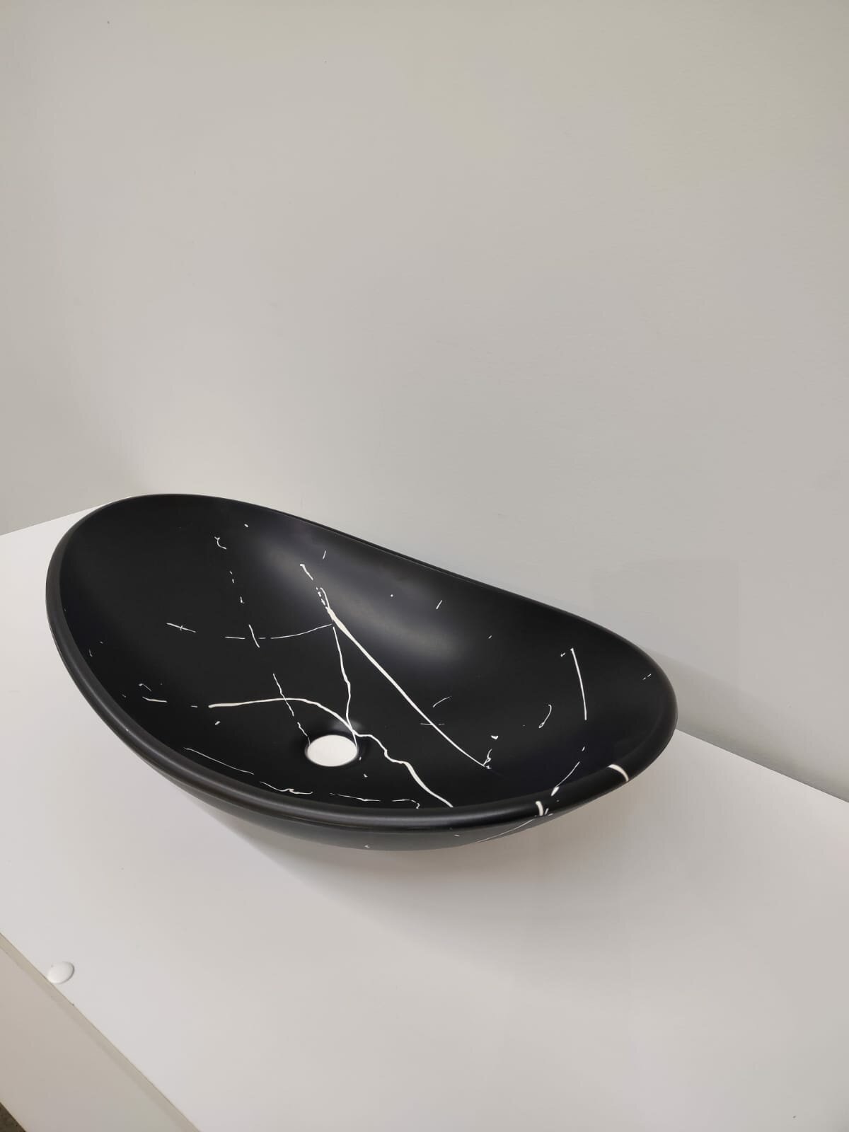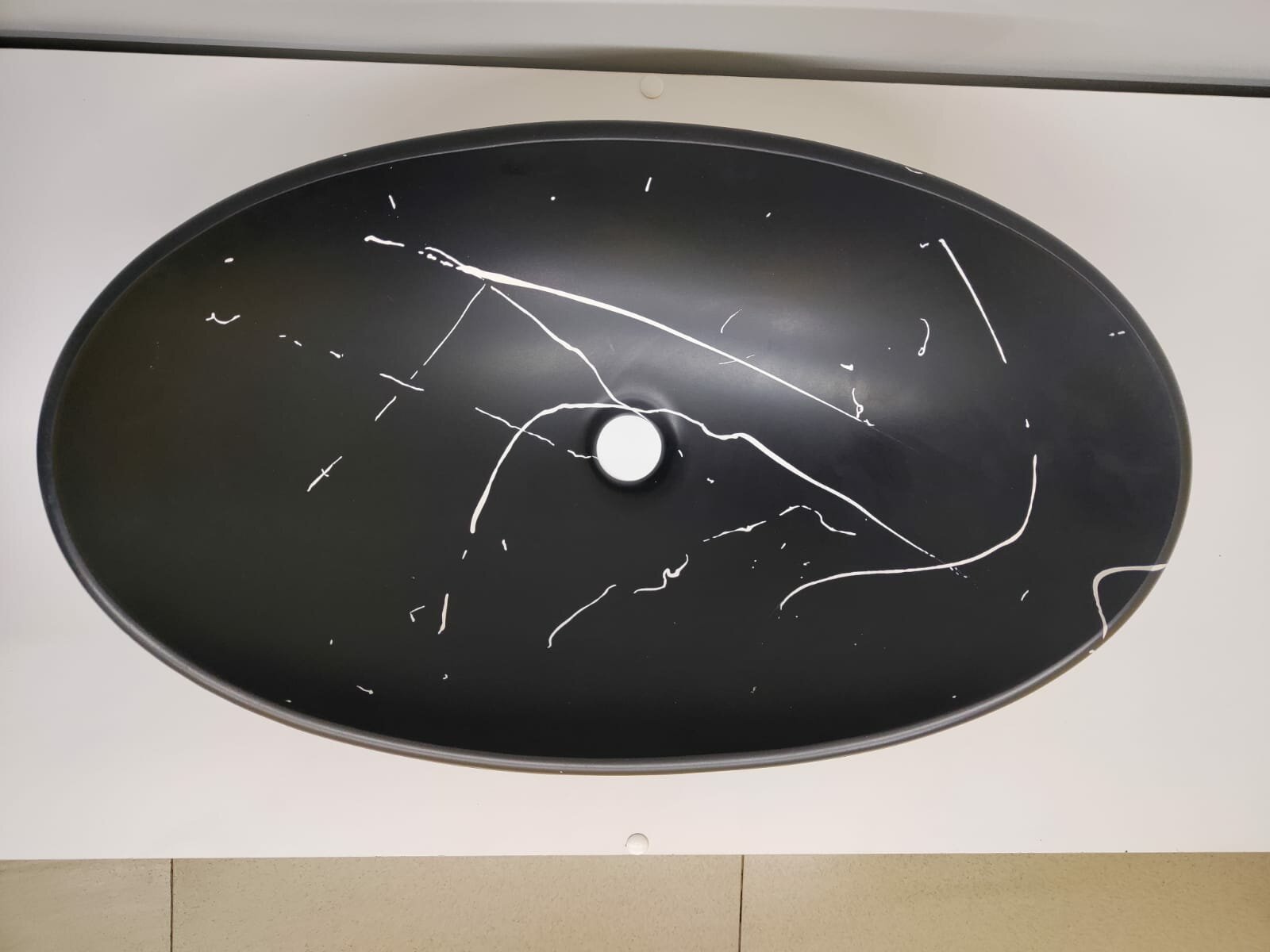 Раковина, овальная, накладная, черный мрамор, кварцевая, 54x33x16 см информация:
