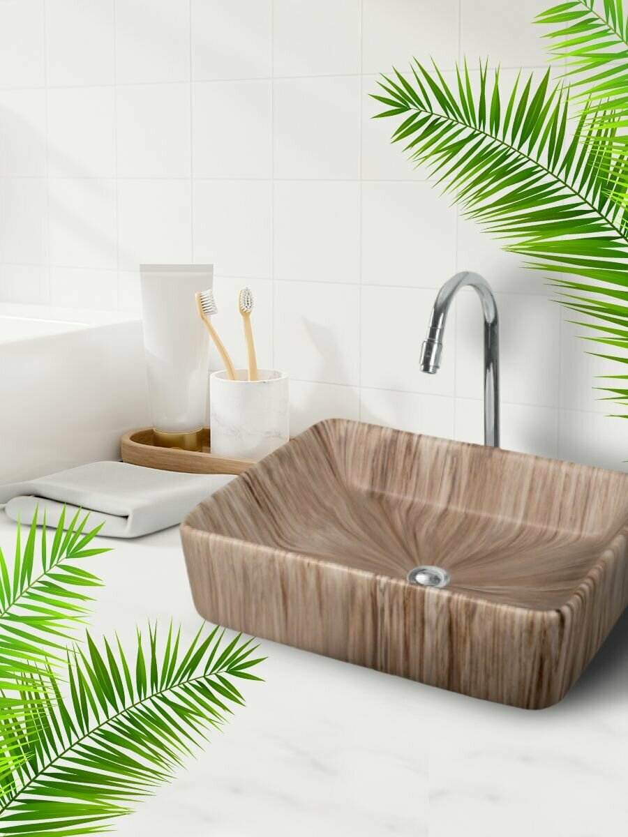 Отзывы на Раковина MINI THIAGO, керамическая, накладная, светло-коричневая, прямоугольная, 49x37,5 см