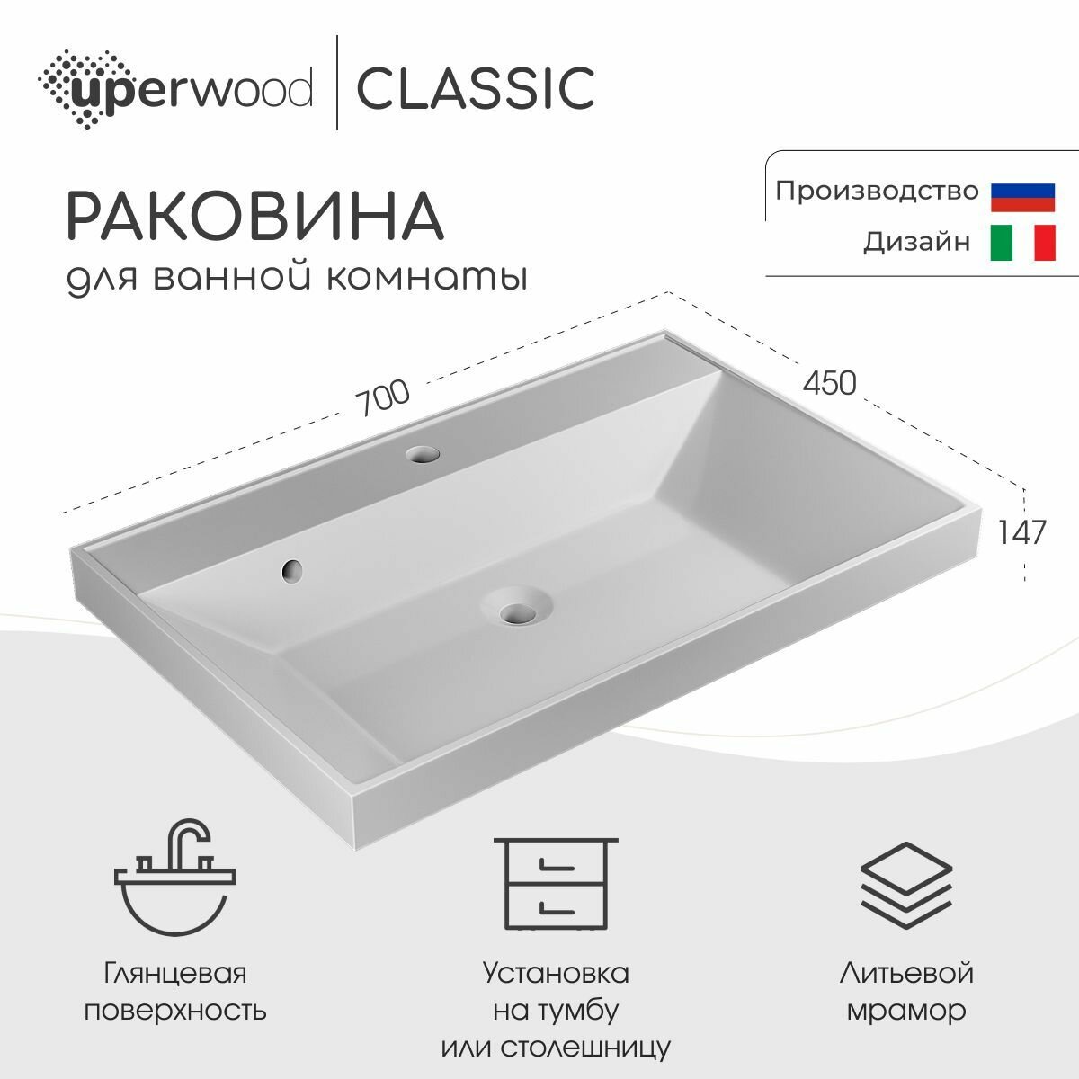Раковина для ванной Uperwood Classic 70х45х15 см, белая глянцевая информация: