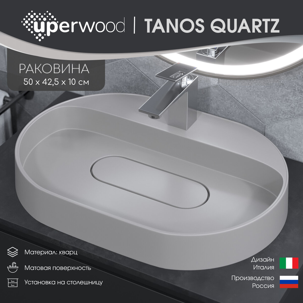 10 цен на Раковина накладная кварцевая Uperwood Tanos Quartz 55х40х10 см, овальная, белая матовая, жасмин