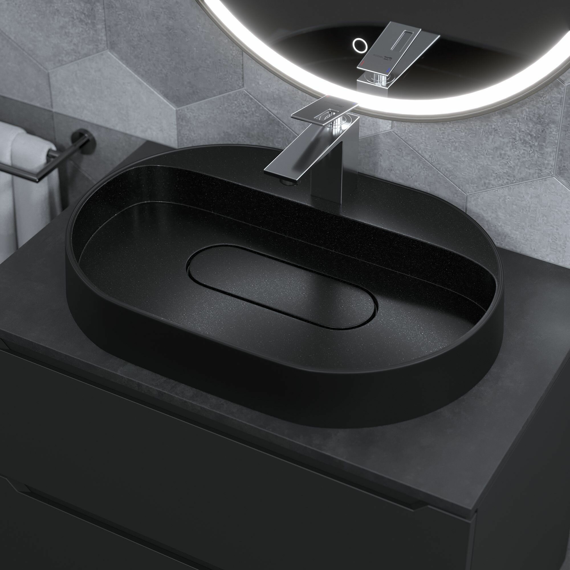 10 цен на Раковина для ванной накладная 55 см, Uperwood Tanos Quartz, овальная, черная, "космос"