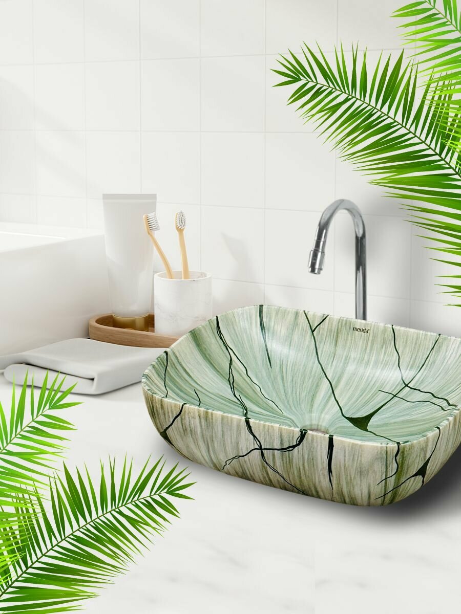 10 цен на Накладная раковина SELVO, керамическая, прямоугольная, 44,5x32,5 см