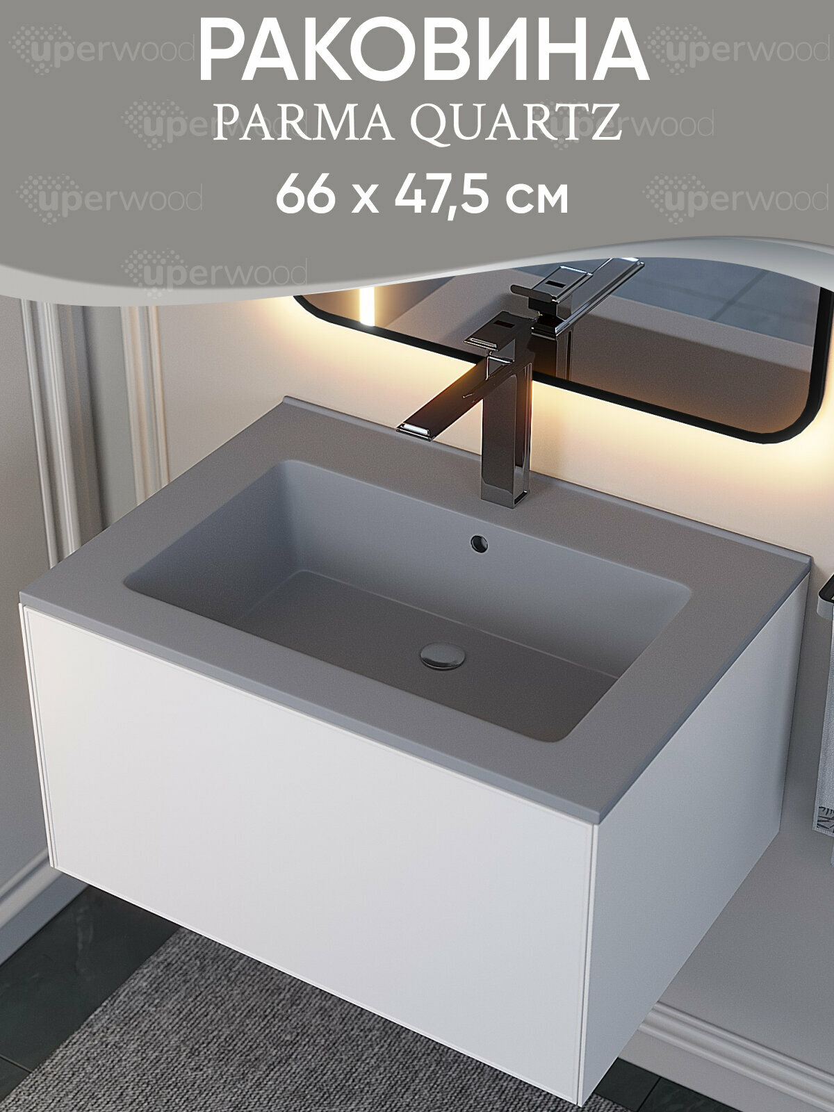 10 цен на Раковина для ванной 66 см, Uperwood Parma Quartz, серая матовая, "бетон"