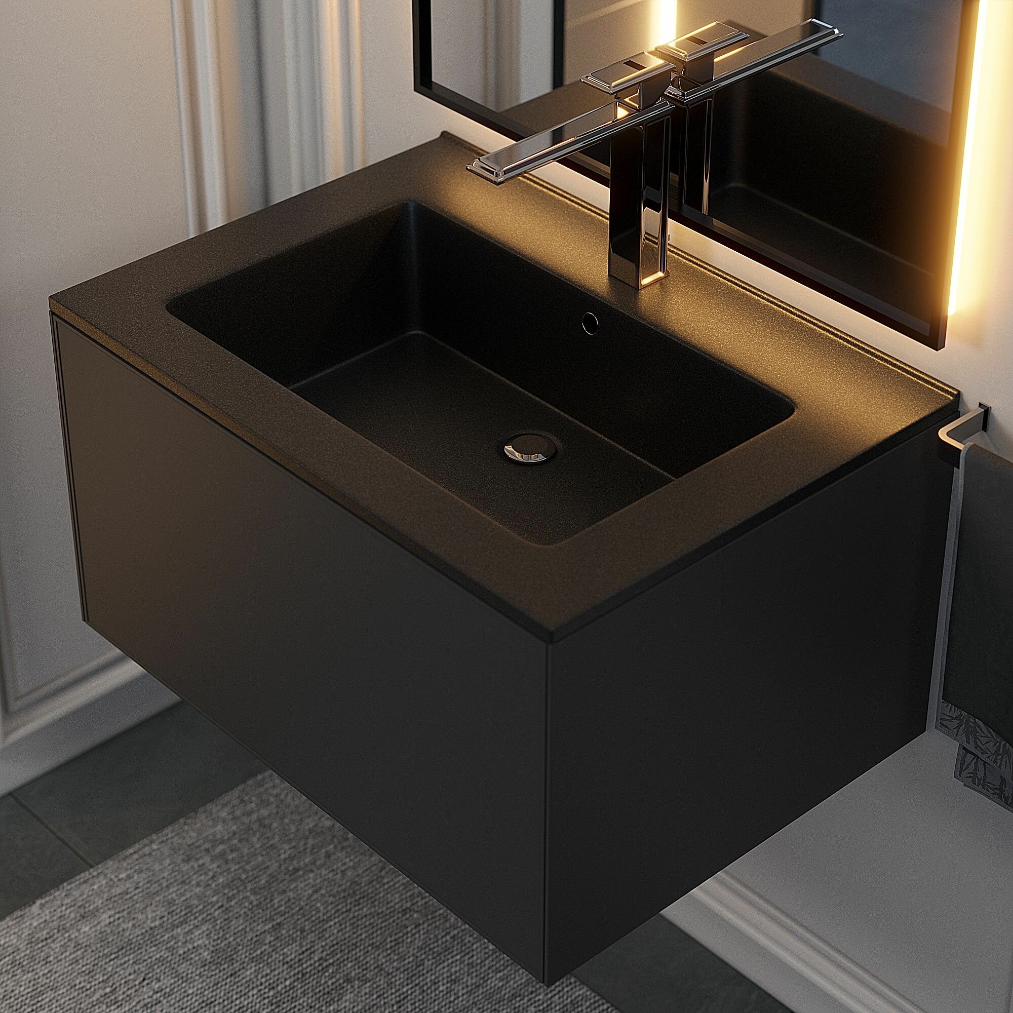 Раковина кварцевая для ванной Uperwood Parma Quartz 65х47,5х15,8 см, черная матовая, космос информация: