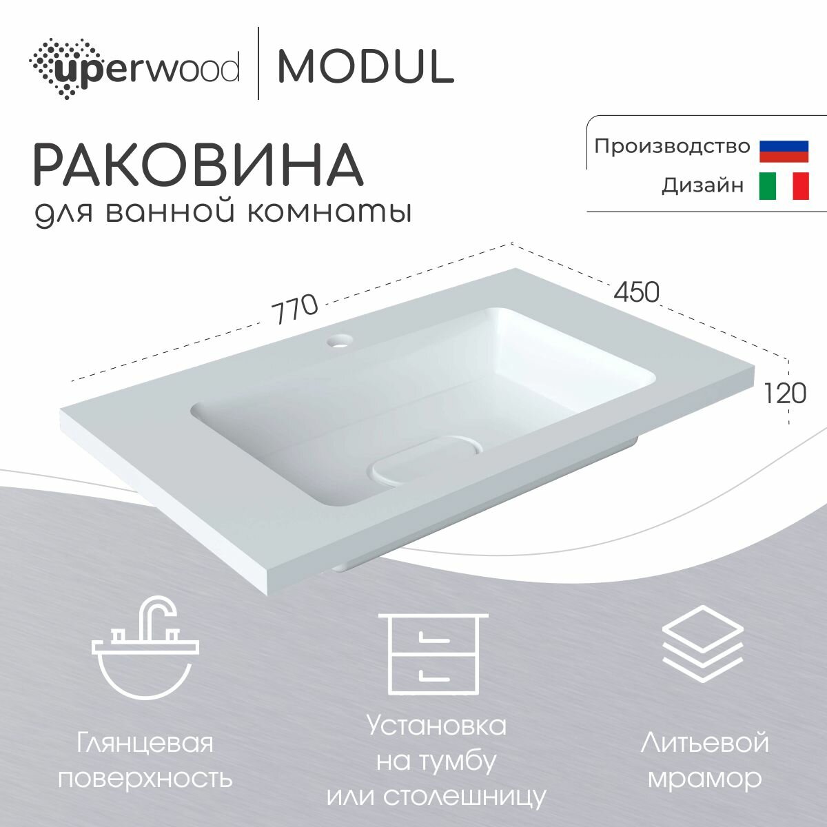 Раковина для ванной Uperwood Modul 77х45х12 см, белая глянцевая информация: