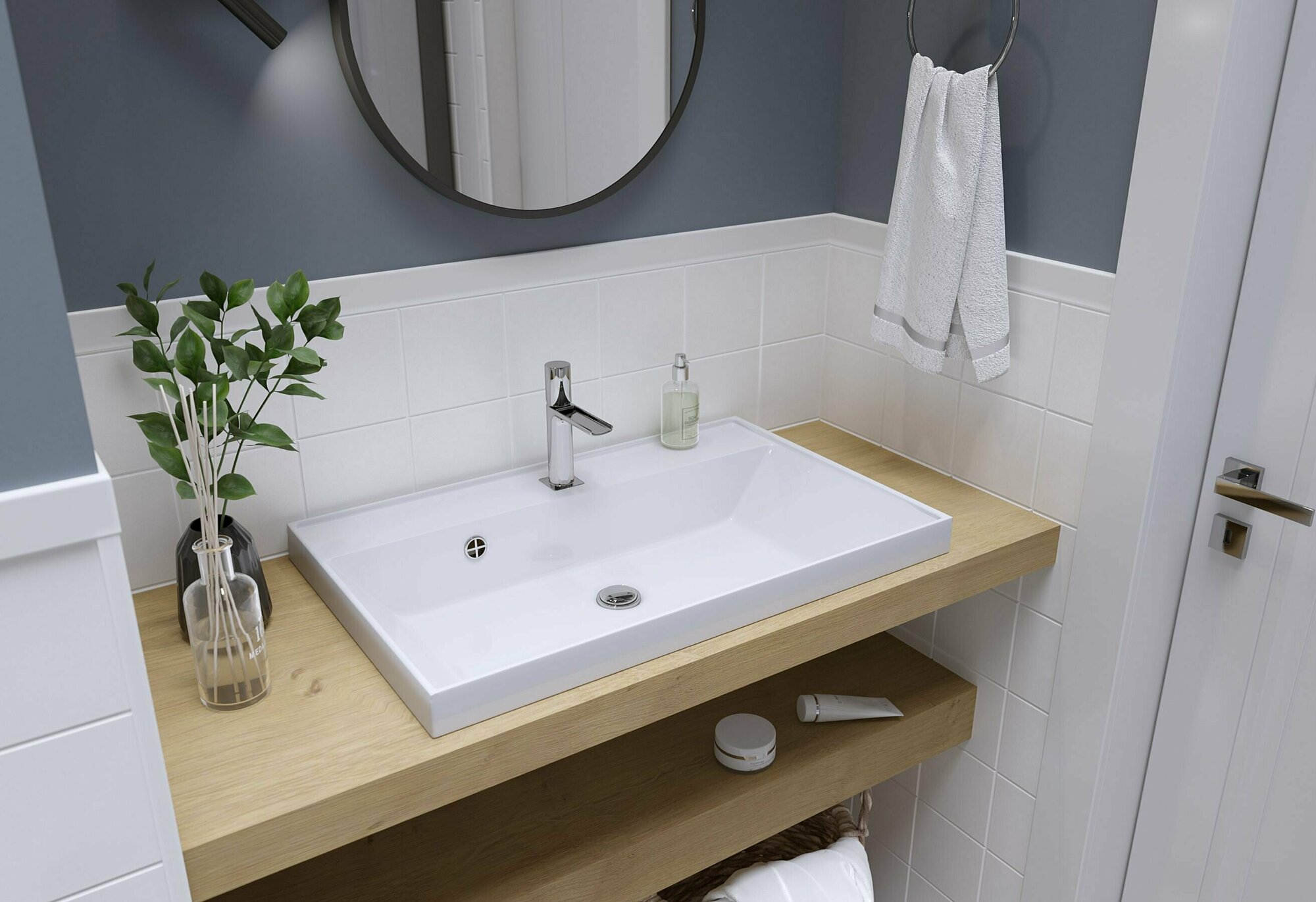 Накладная раковина в ванную комнату "Океан 90 правая", белая, 90х40