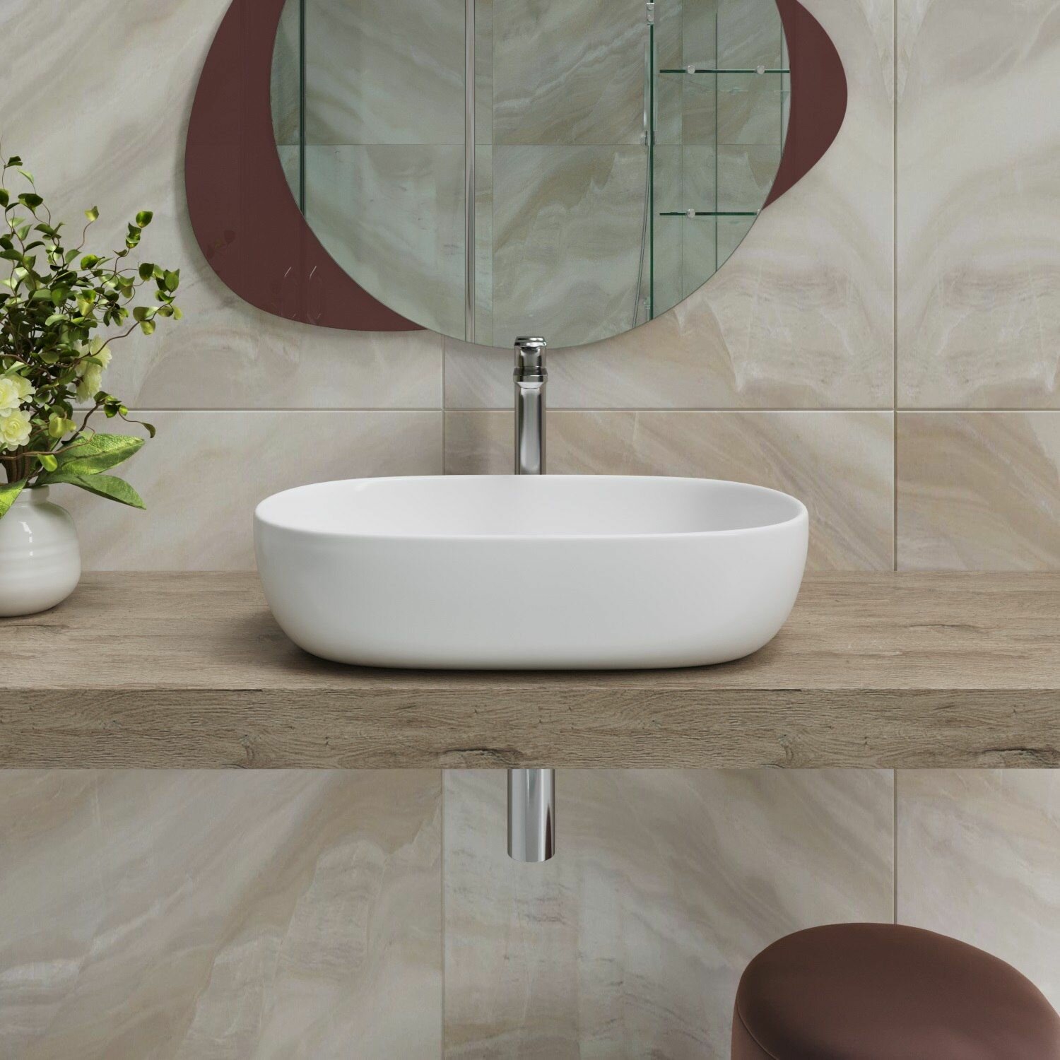Накладная-подвесная раковина для ванной Lavinia Boho Bathroom Sink 33311023: прямоугольная, ширина умывальника 40 см, цвет глянцевый белый