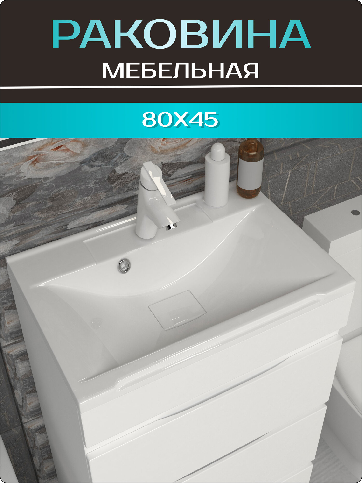 Мебельная раковина в ванную комнату "Комфорт 80", накладная, белая информация: