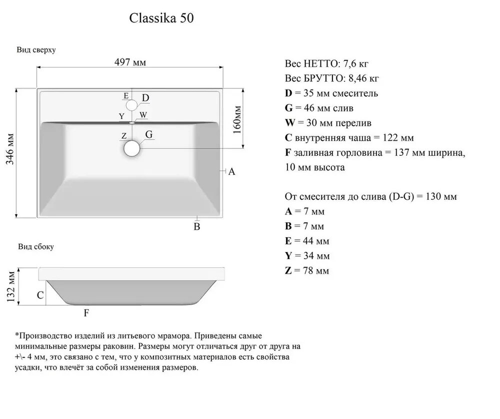 Раковина для установки над стиральной машиной "Стиль-50" (60x50), цвет белый
