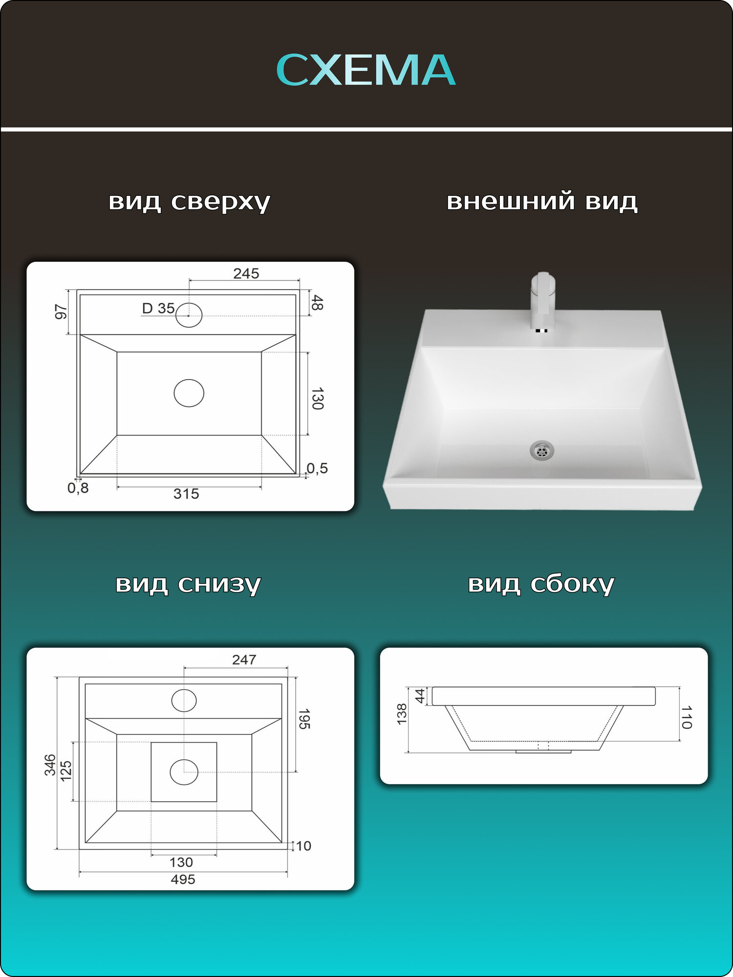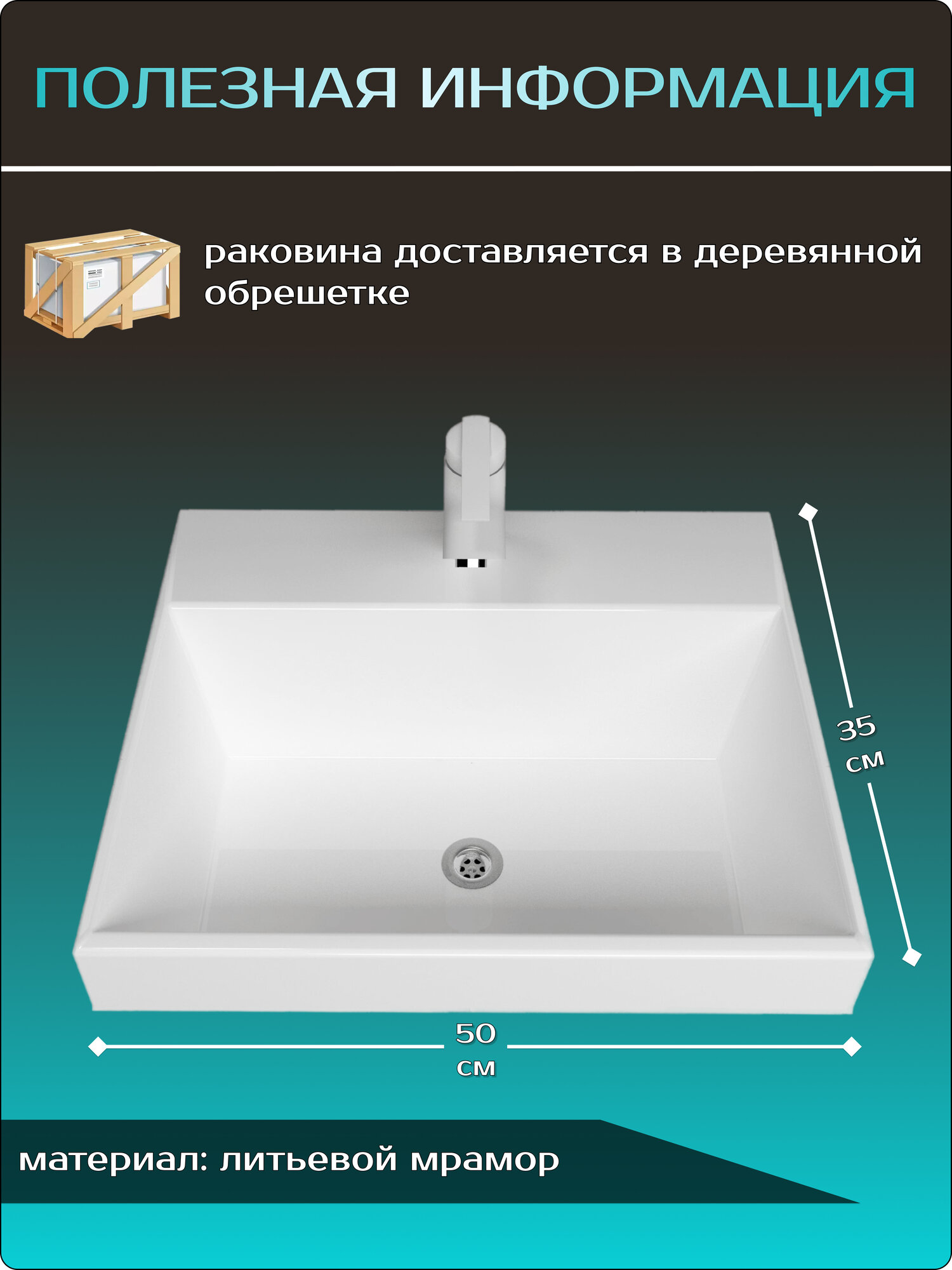 Раковина накладная в ванную комнату "Слим 50", мебельная, белая информация: