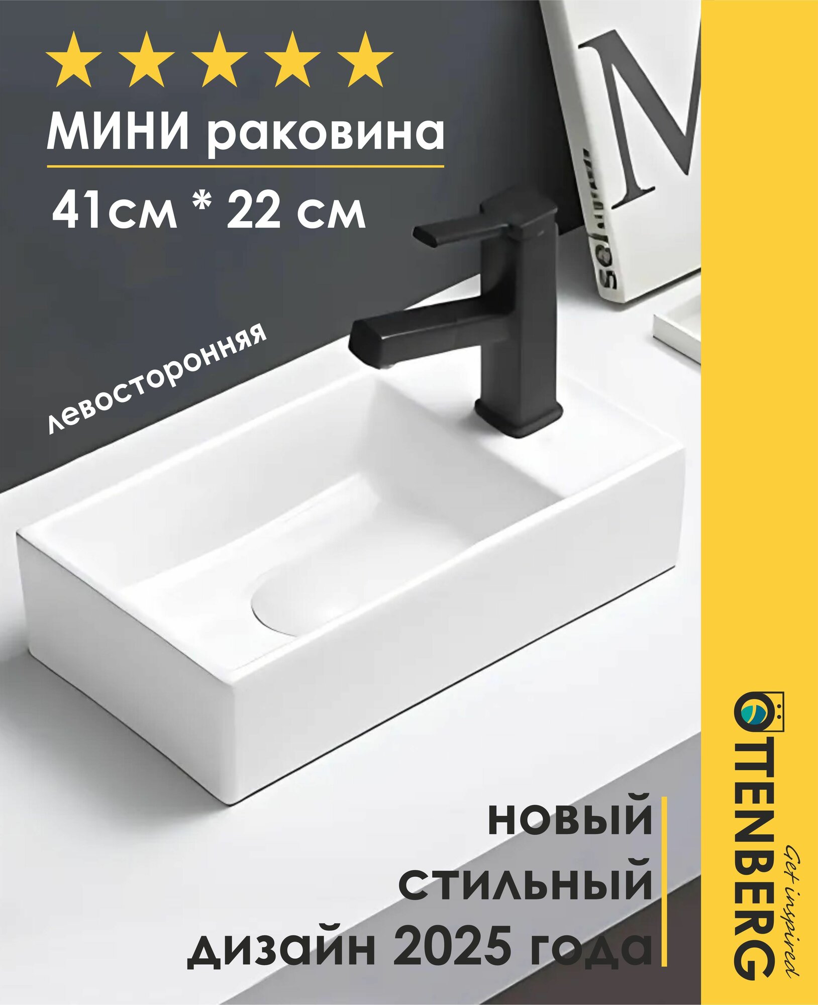 Подвесная мини раковина для туалета левосторонняя белая прямоугольная Ottenberg, 41х22х10см информация: