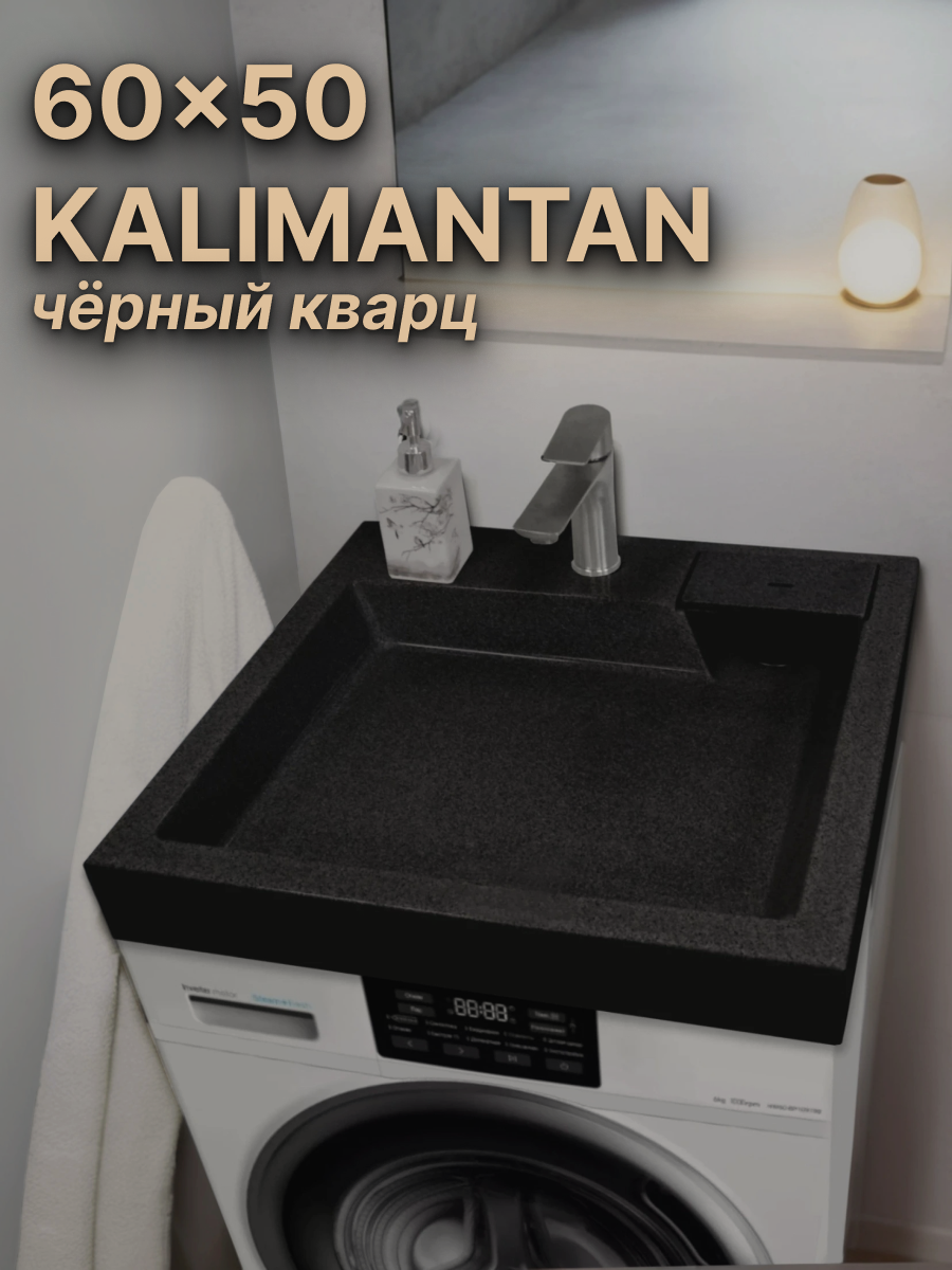 Отзывы на Раковина над стиральной машиной KALIMANTAN 60х50, цвет "чёрный кварц", литьевой мрамор