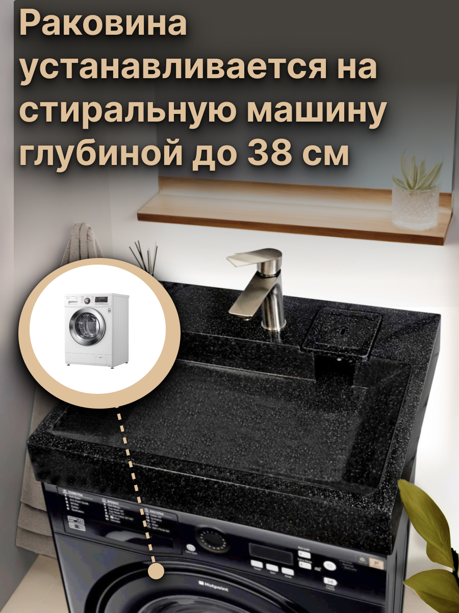 10 цен на Раковина над стиральной машиной MALTA (60х50), цвет "Чёрный кварц", литьевой мрамор