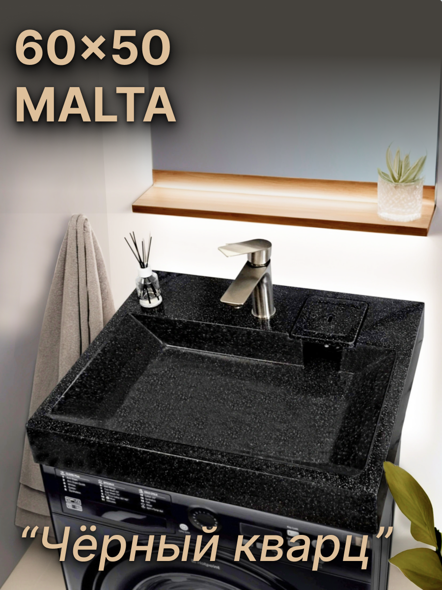 Раковина над стиральной машиной MALTA (60х50), цвет "Чёрный кварц", литьевой мрамор информация: