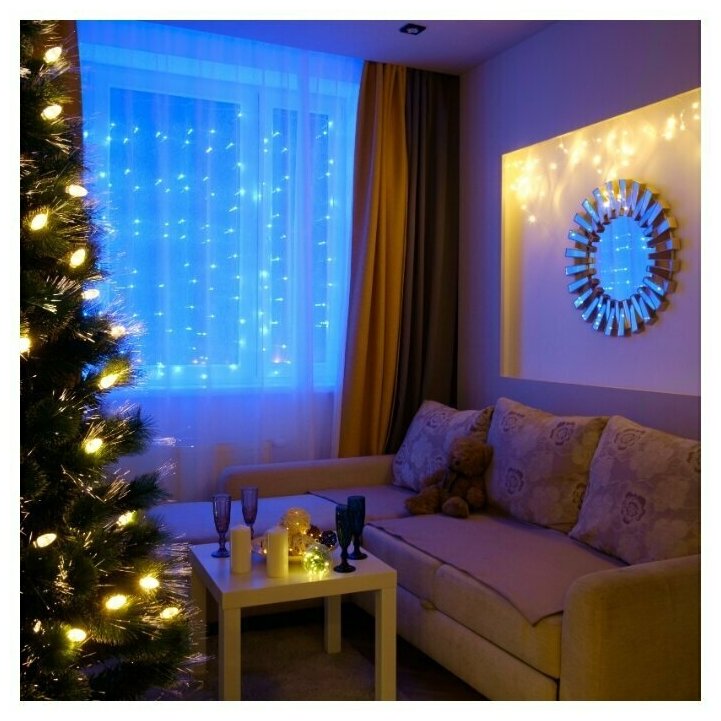 Отзывы на Гирлянда "Светодиодный Дождь" 2.5х2 м с 8 режимами свечения, 300 LED, прозрачный провод, 230 В, цвет свечения: Синий