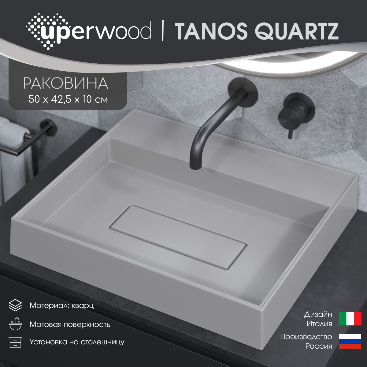 10 цен на Раковина для ванной накладная кварцевая Uperwood Tanos Quartz 50 см, прямоугольная, без отверстия для смесителя, жасмин