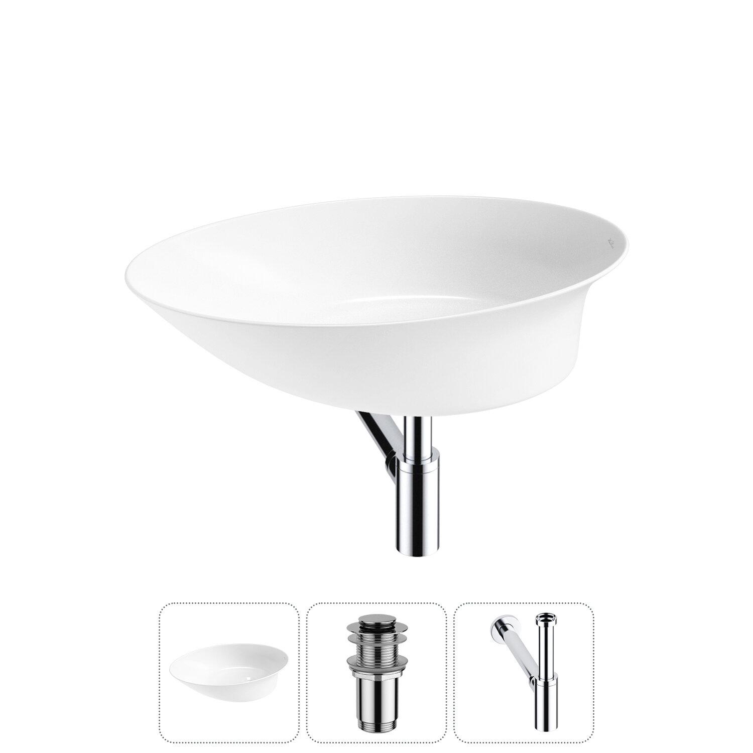 Накладная раковина в ванную комнату Wellsee Faze Moment 20214967R в наборе 4 в 1: раковина 55 см в цвете белый глянец, донный клапан, сифон, смеситель (цвет набора хром) 20 909 ₽