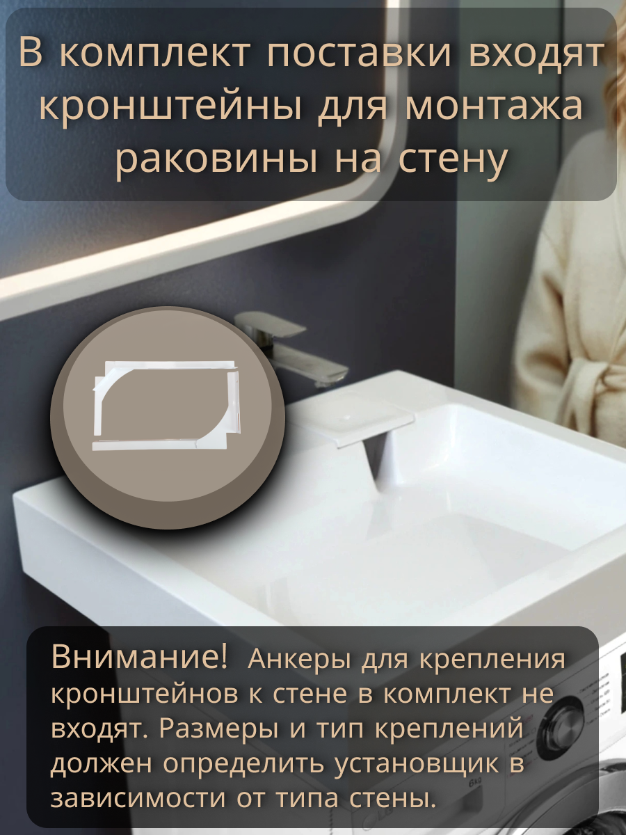 Раковина для установки над стиральной машиной 60x50 "Техно-50", цвет белый, щелевой слив, литьевой мрамор 14 000 ₽