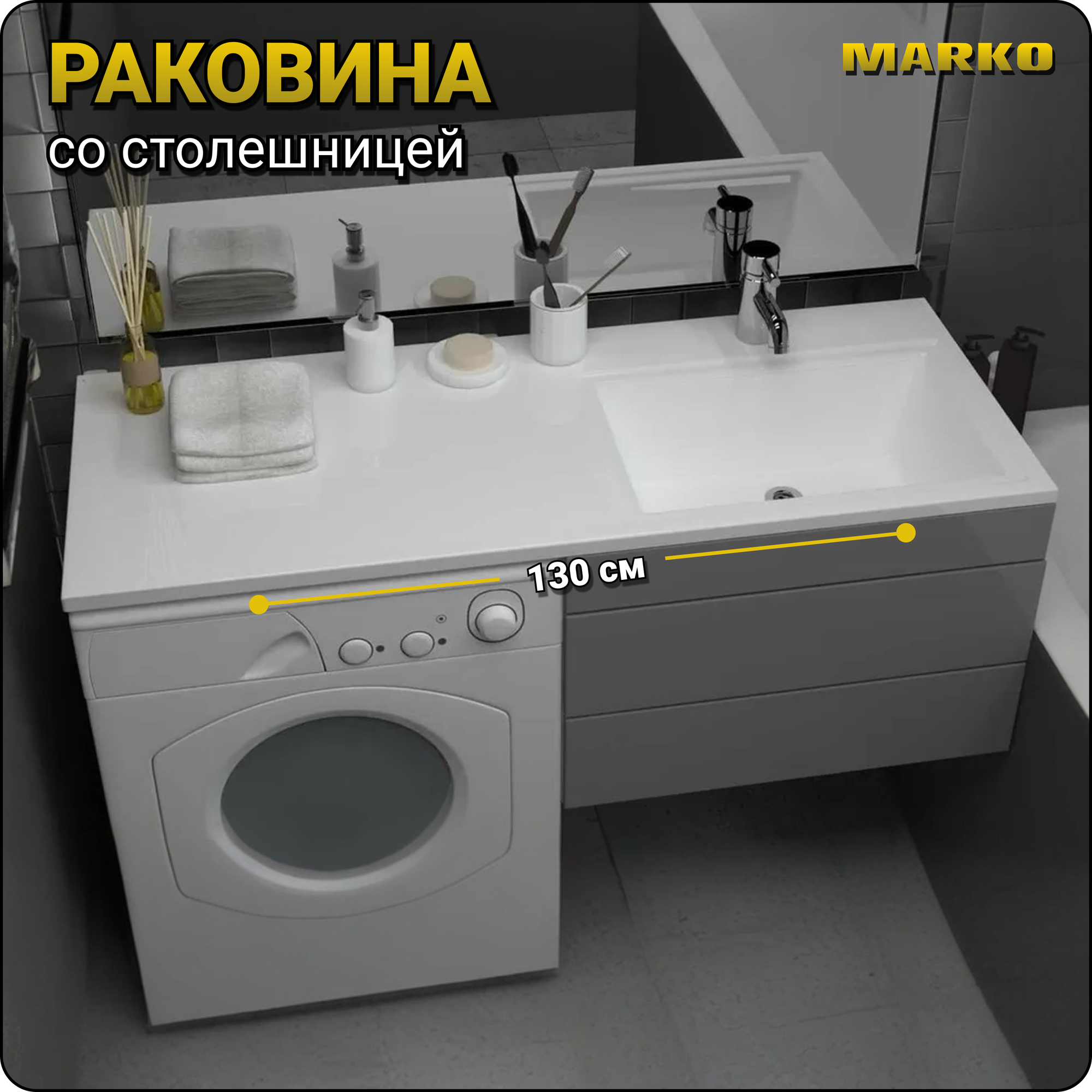 10 цен на Раковина белая Марсал 130 прав. на стиральную машину 1300*489