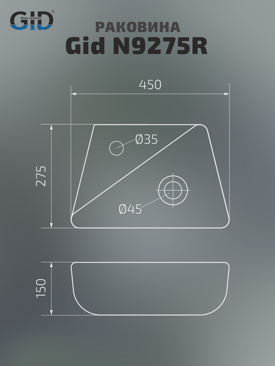Отзывы на (45х27.5х15см) Керамическая подвесная раковина Gid N9275R (Чаша справа)