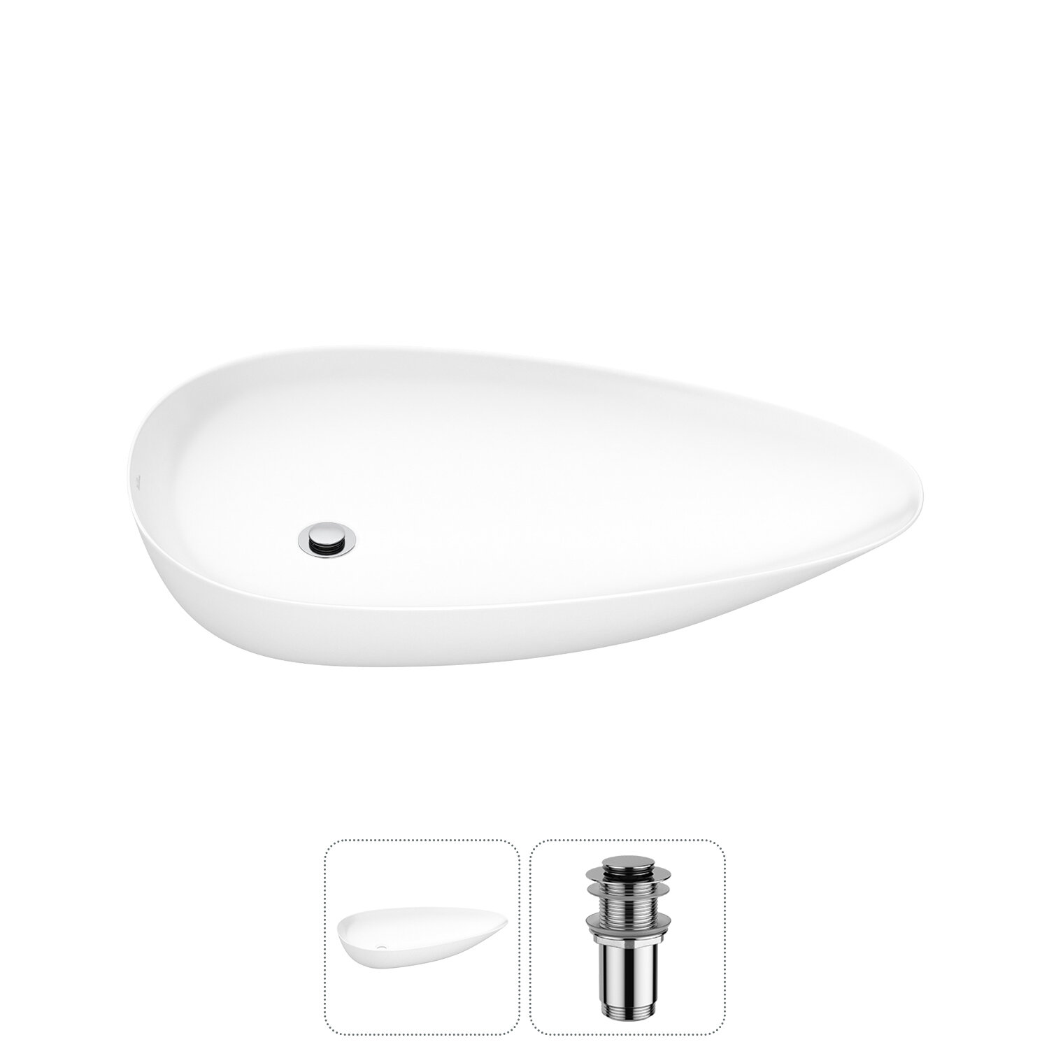 Накладная раковина в ванную комнату Wellsee Faze Moment 20212157R в наборе 2 в 1: раковина 76 см в цвете белый глянец, донный клапан в цвете хром информация: