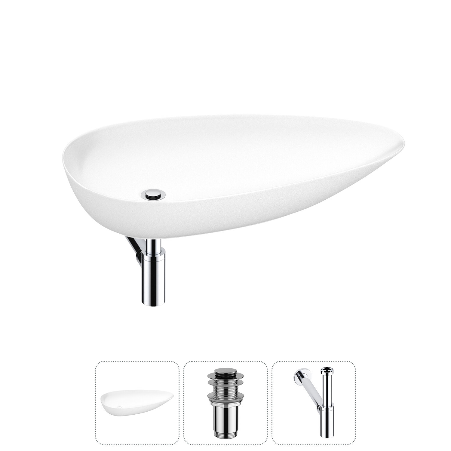 Накладная раковина в ванную комнату Wellsee Faze Moment 20212161R в наборе 3 в 1: раковина 76 см в цвете белый глянец, донный клапан, сифон (цвет набора хром) информация: