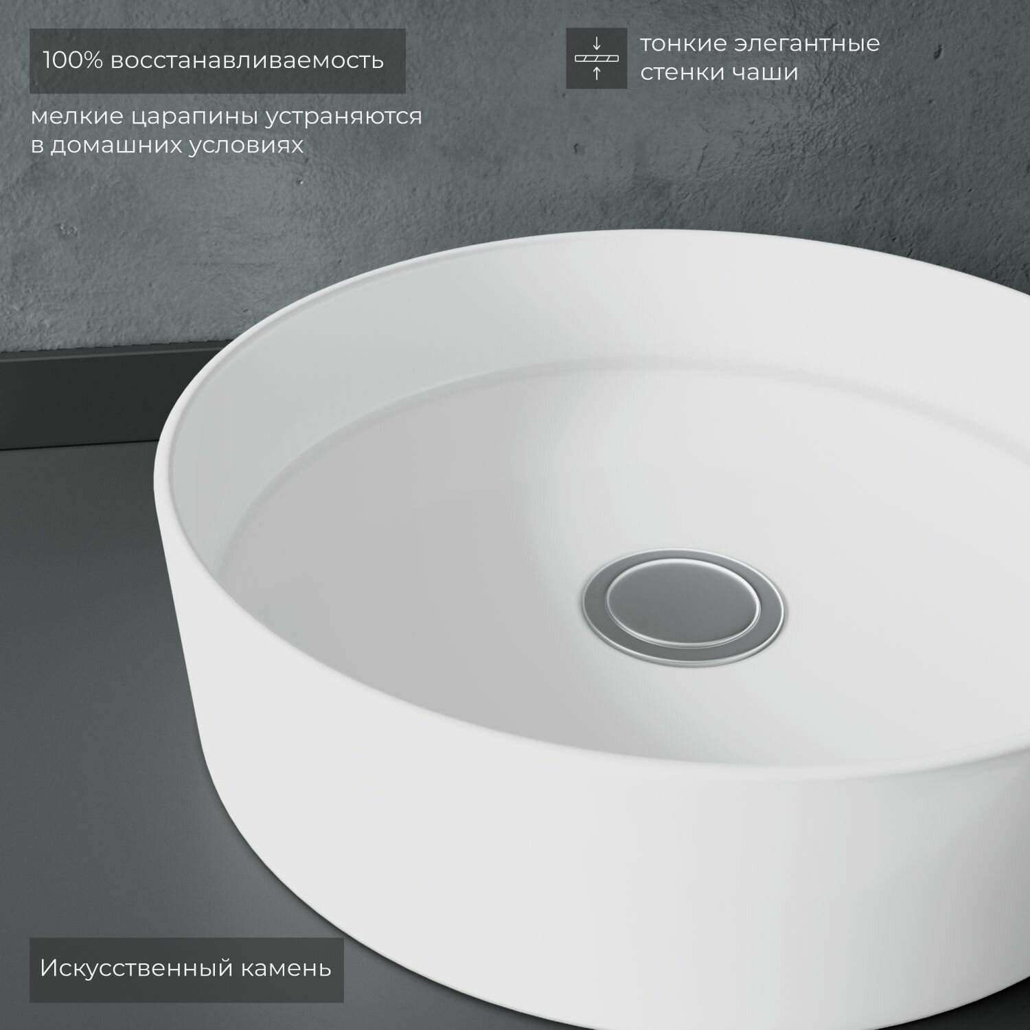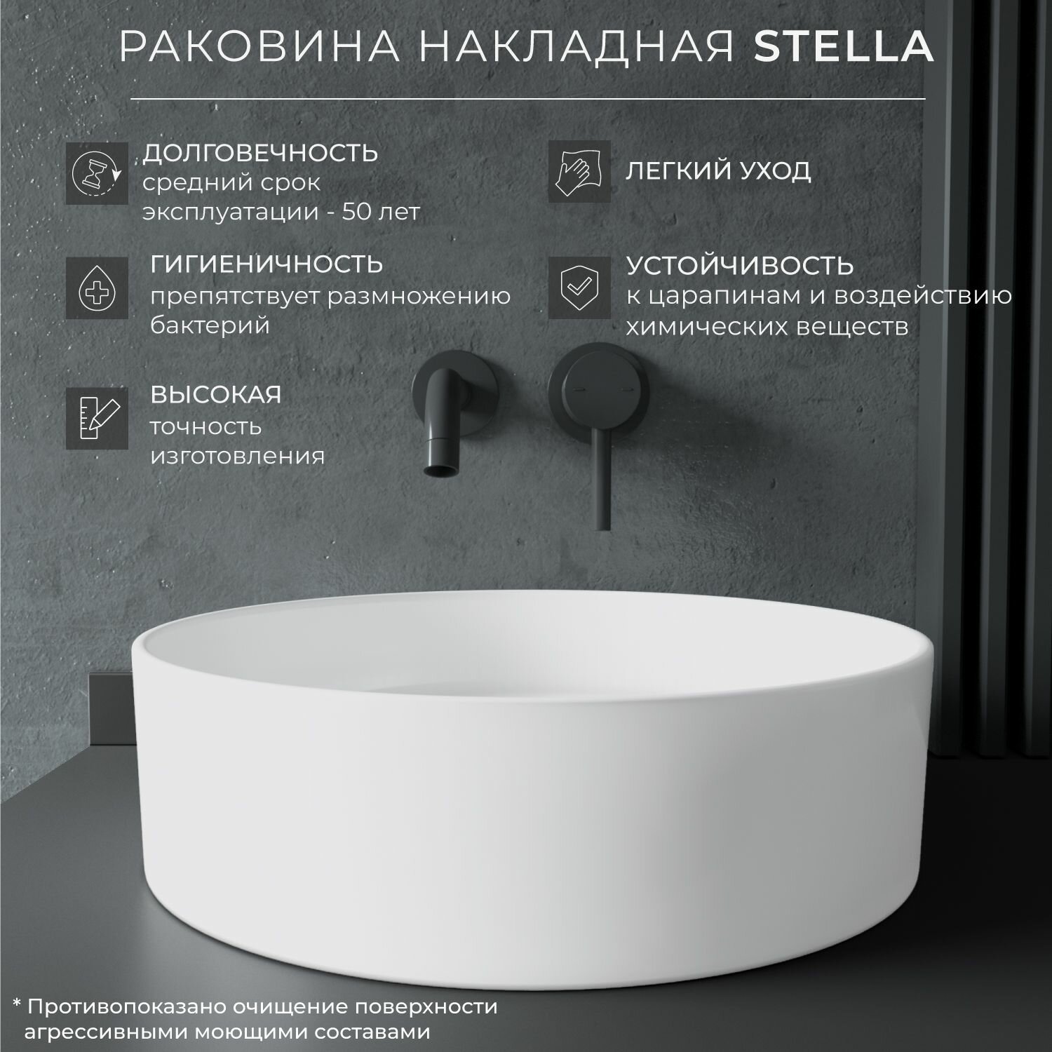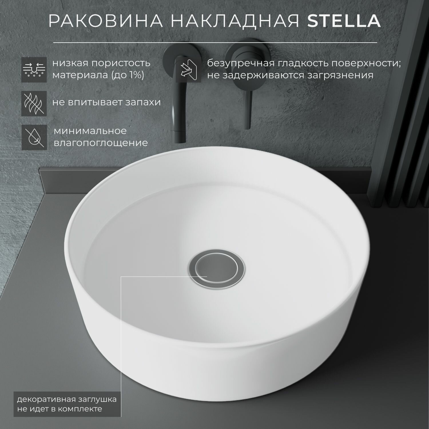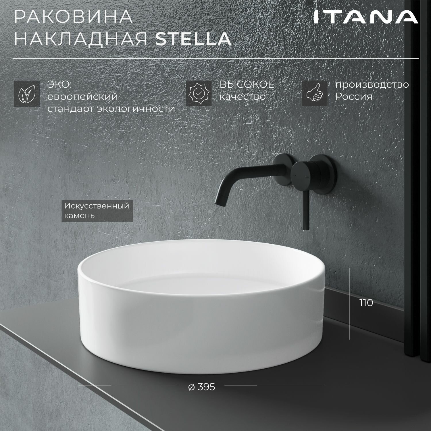 Раковина накладная для ванной ITANA Stella 395х395х110 Белый информация:
