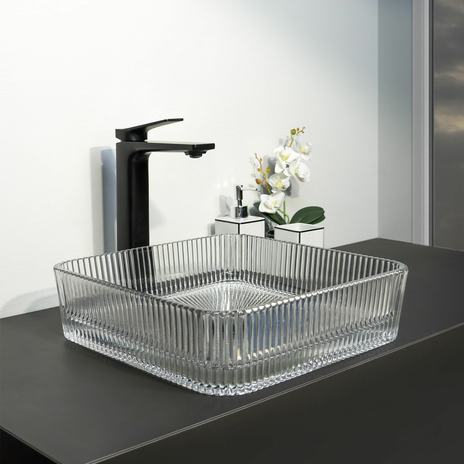 Отзывы на Накладная стеклянная раковина 40 см для ванной, рифленый борт Comforty CF22402 на столешницу