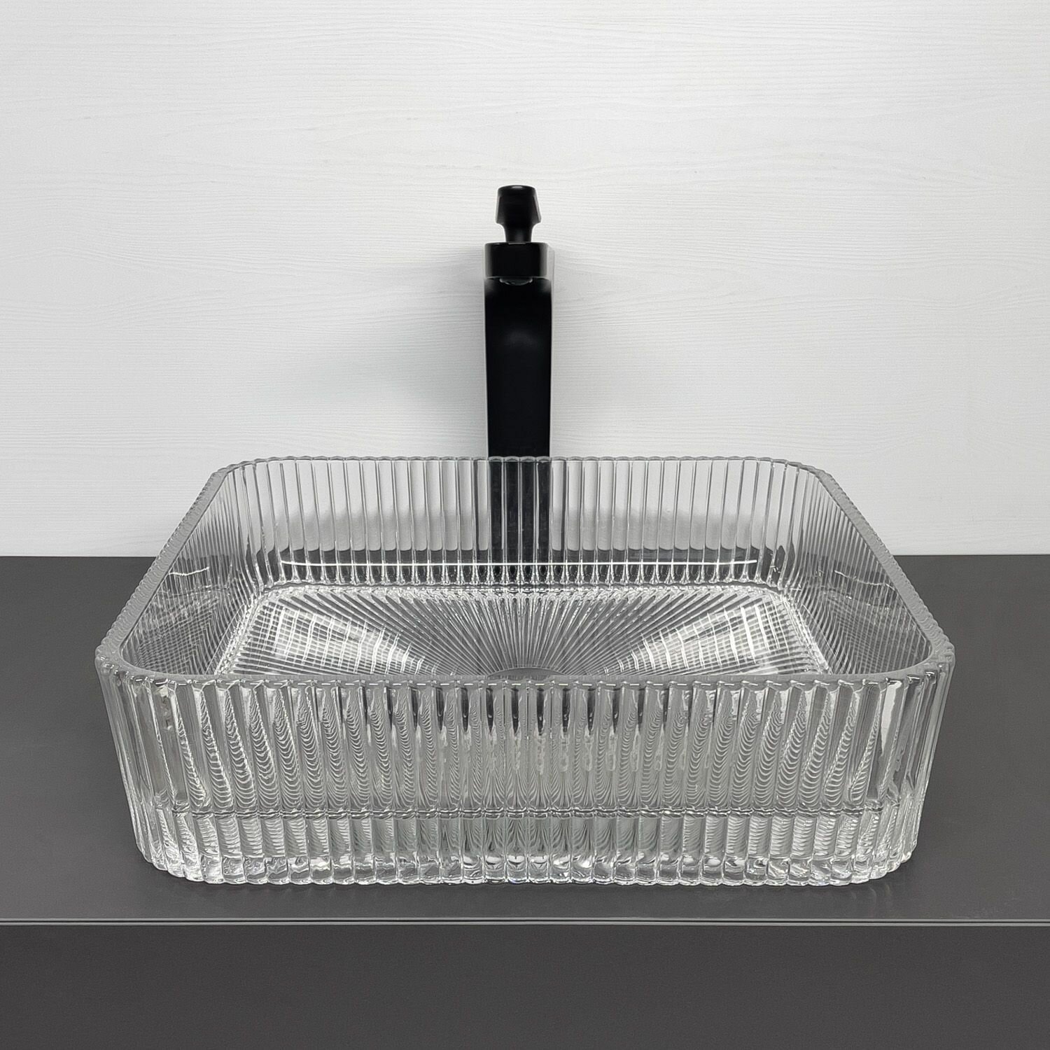 Накладная стеклянная раковина 40 см для ванной, рифленый борт Comforty CF22402 на столешницу информация:
