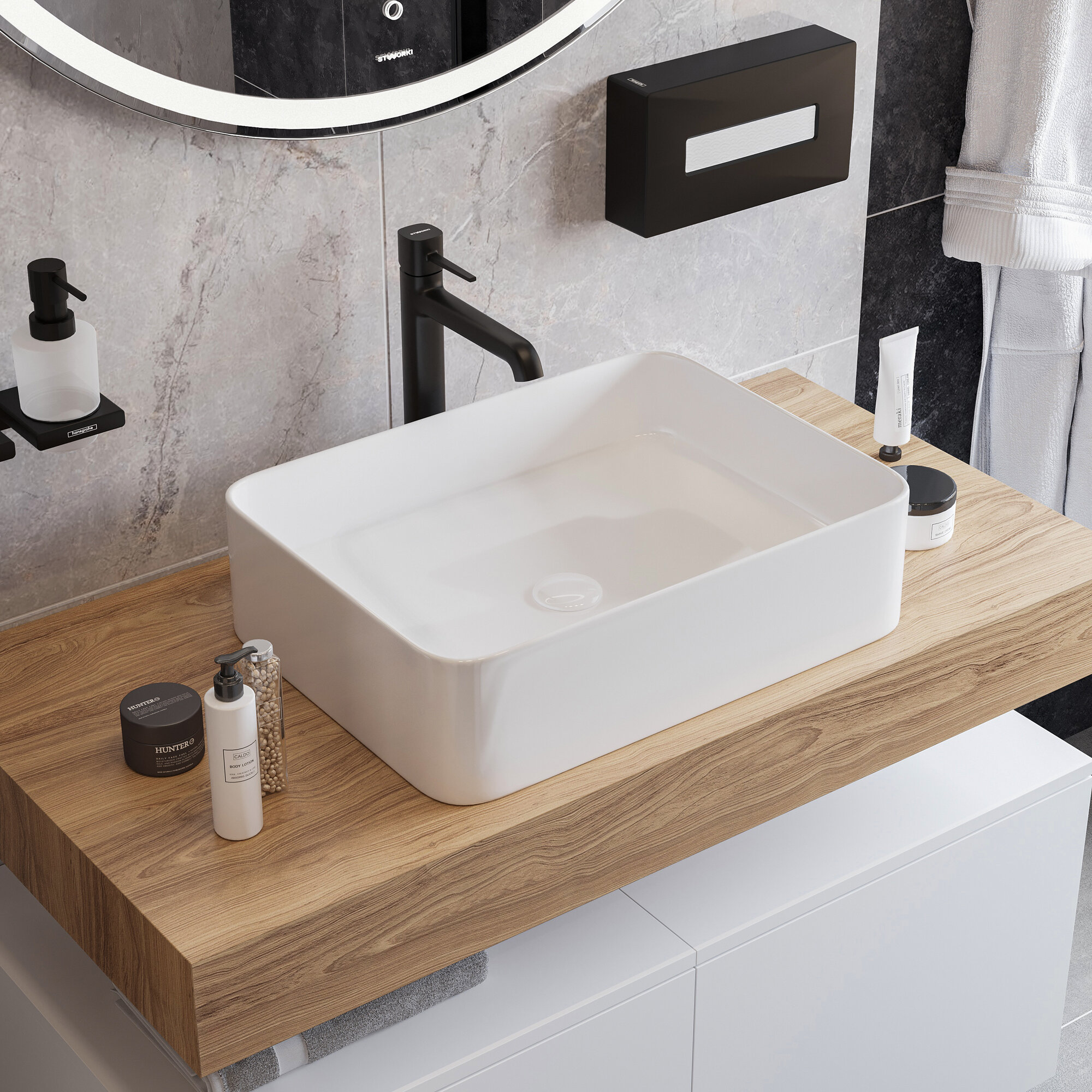 Накладная-подвесная раковина для ванной Lavinia Boho Bathroom Sink 33311023: прямоугольная, ширина умывальника 40 см, цвет глянцевый белый Накладная-подвесная раковина для ванной Lavinia Boho Bathroom Sink 33311023: прямоугольная, ширина умывальника 40 см, цвет глянцевый белый