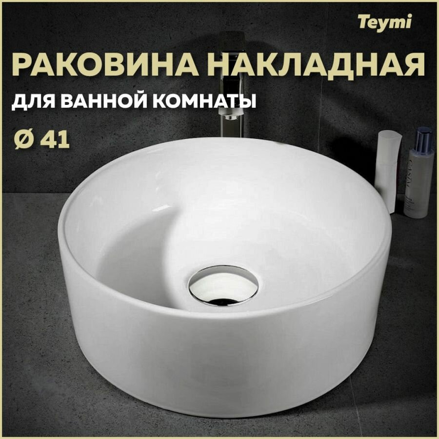 Раковина для ванной круглая накладная Teymi Lina D41 белая T50105 информация: