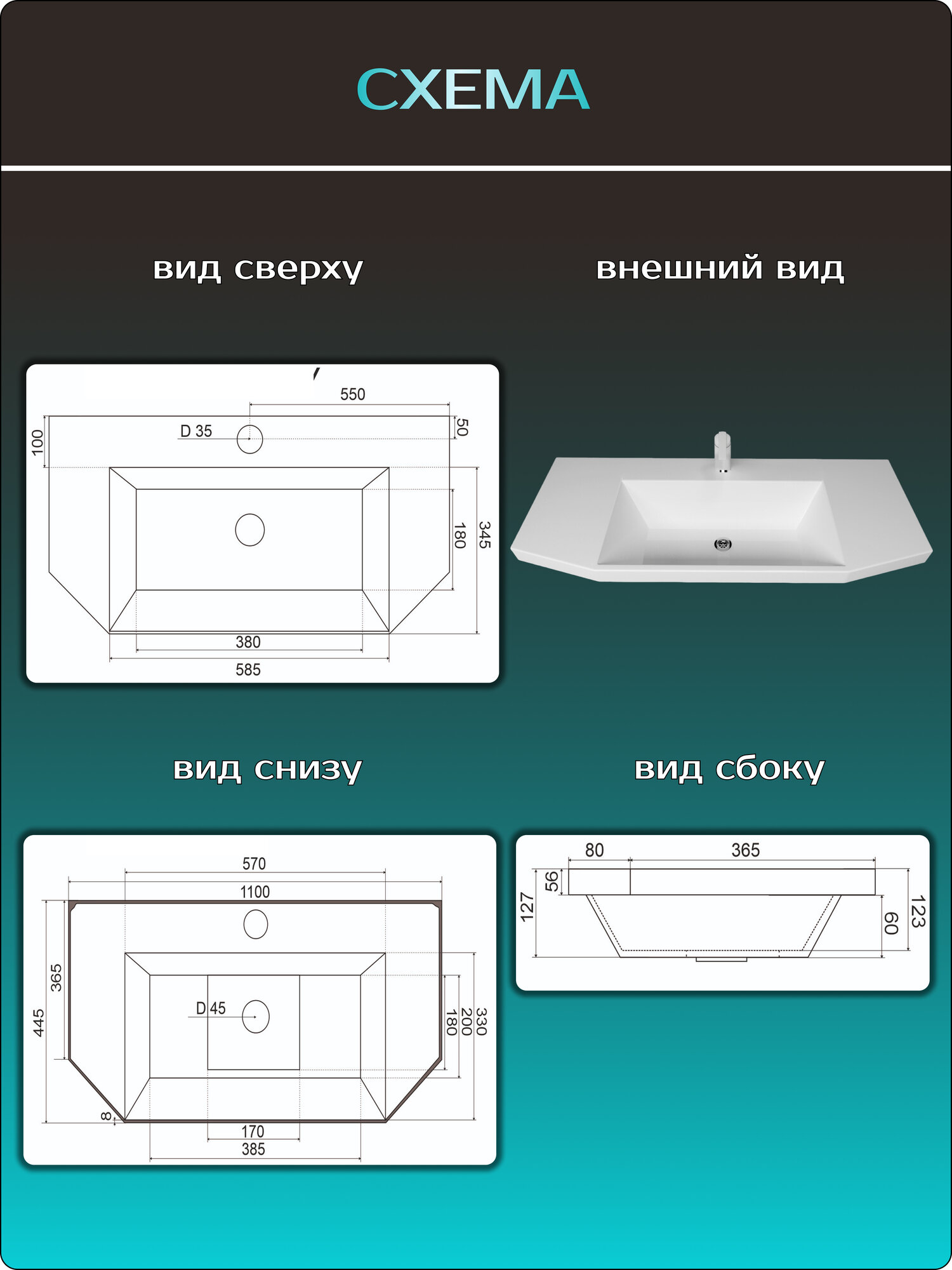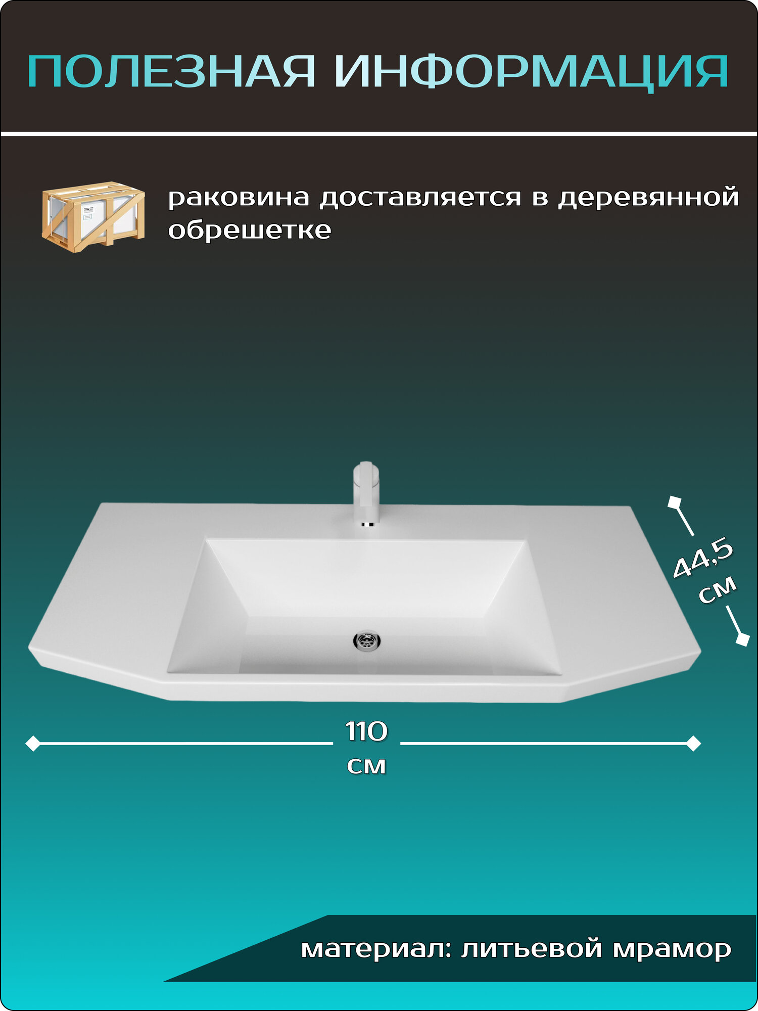 Накладная раковина в ванную комнату "Слим 110", белая, 110х45 информация:
