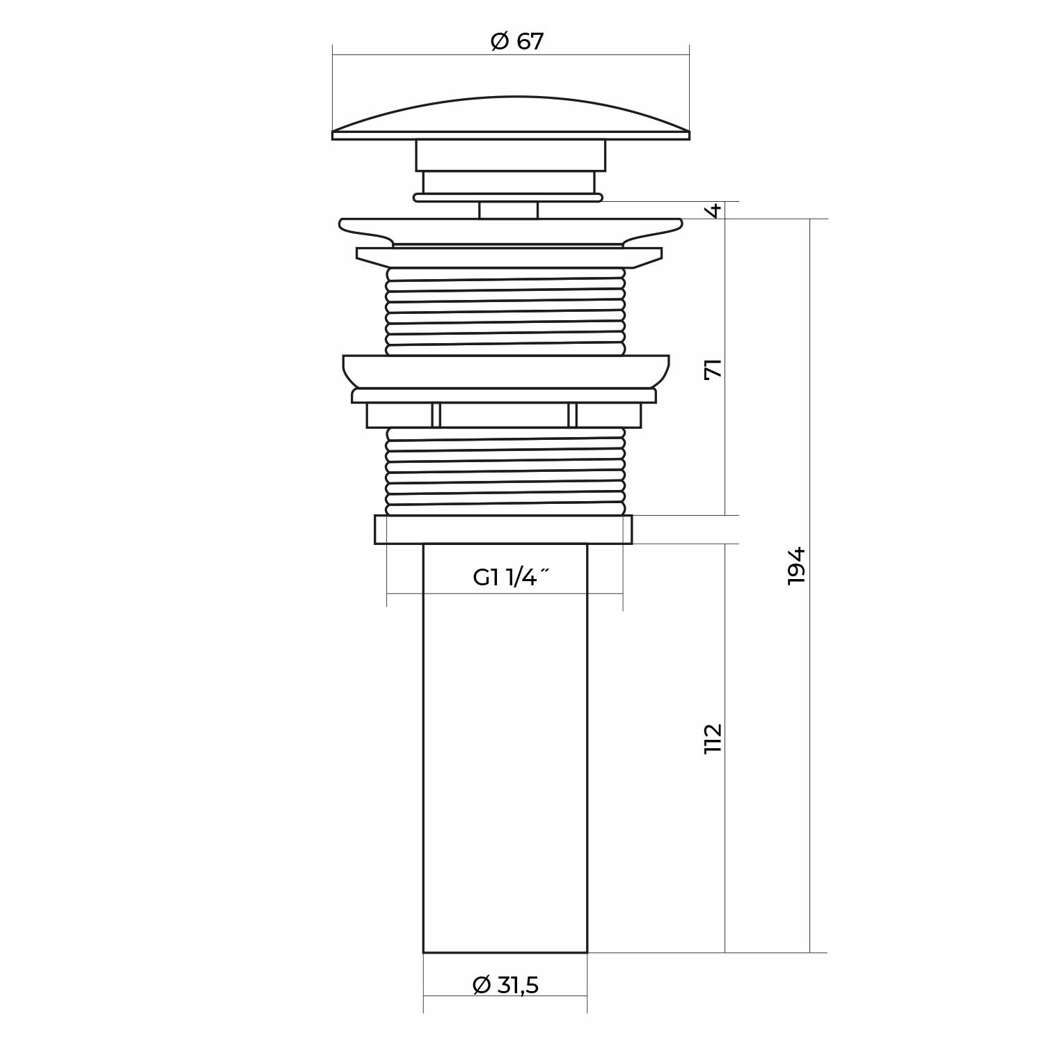 Донный клапан без перелива для раковины ITANA 67х67х194 grey латунь информация: