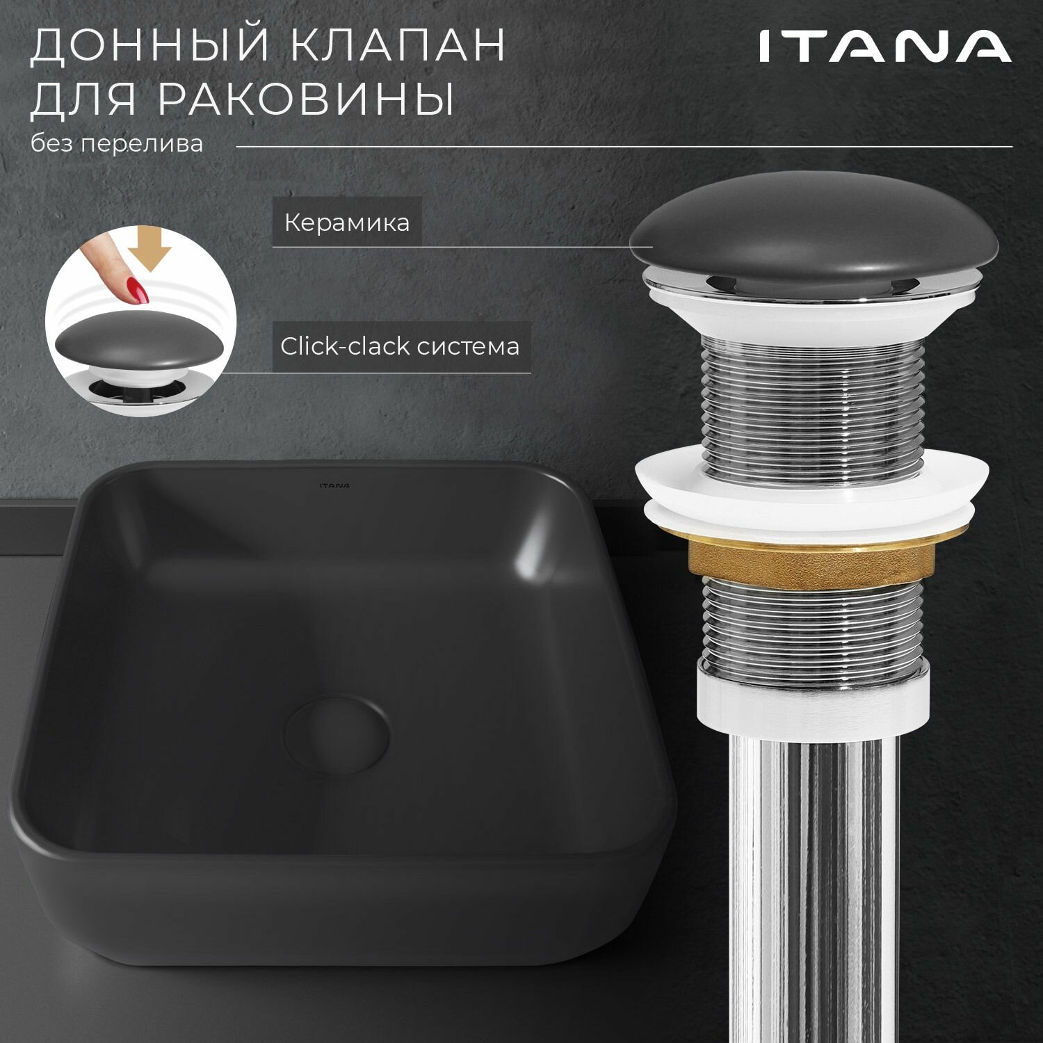 Отзывы на Донный клапан без перелива для раковины ITANA 67х67х194 grey латунь