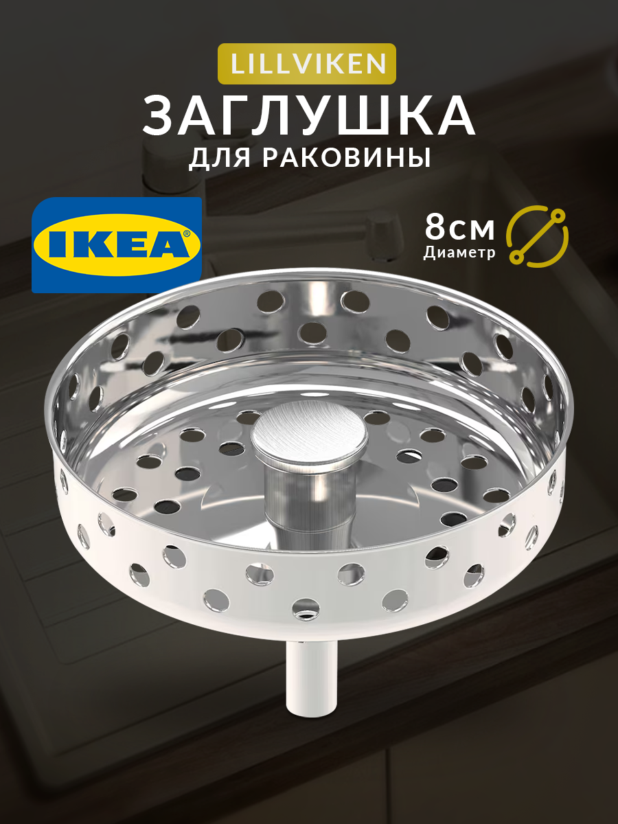 Отзывы на Пробка для раковины LILLANGEN от IKEA артикул 703.115.41, нержавеющая сталь, хромированное покрытие, серебристая