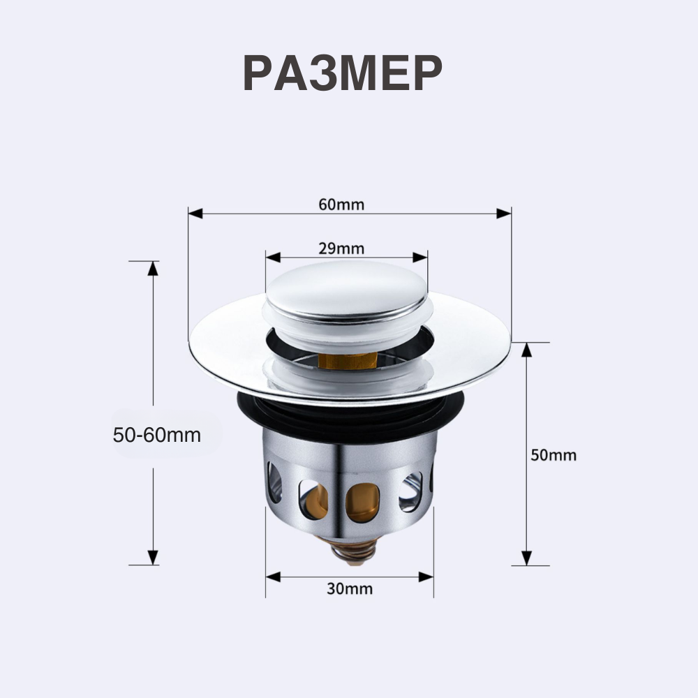 Донный клапан клик-клак серебристый, 60 мм информация: