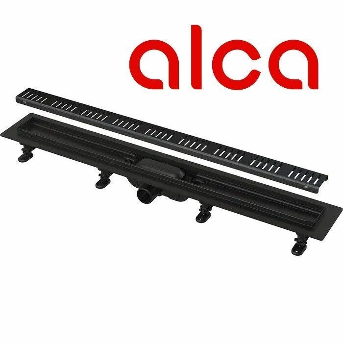 Водоотводящий желоб Alcaplast APZ19BLACK-950 c двухсторонней решеткой под укладку плитки Черный матовый 18 540 ₽