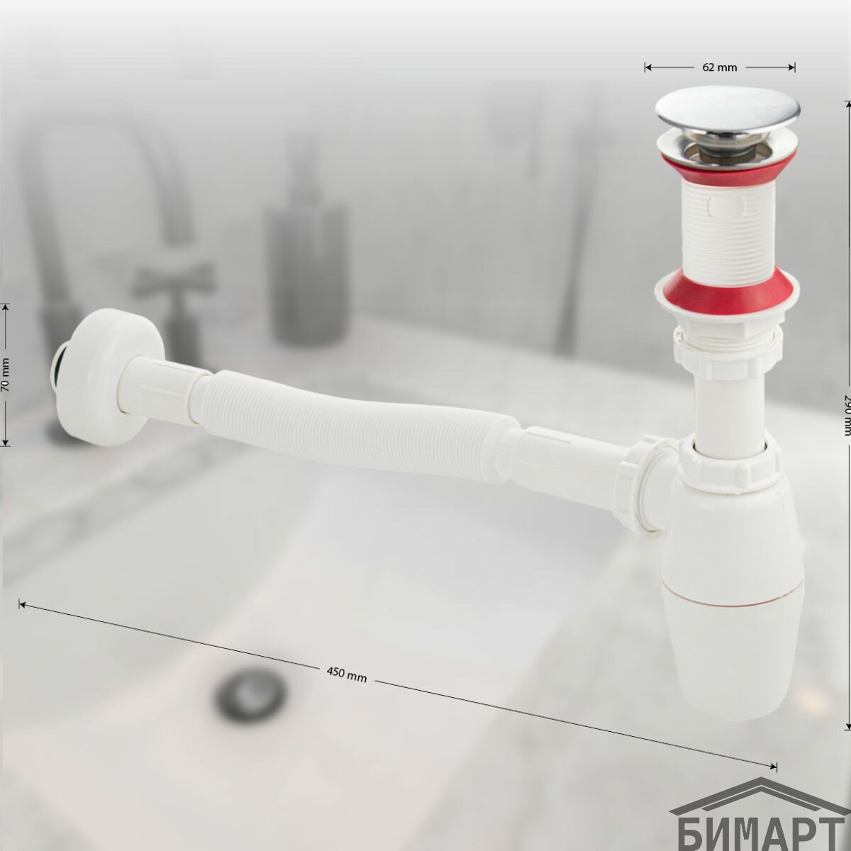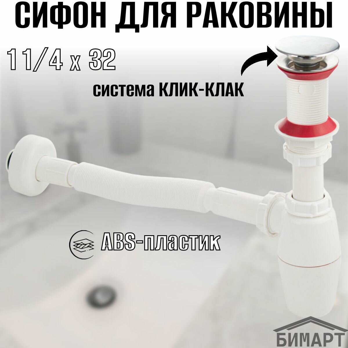 Санакс - Сифон для раковины 1 1/4 х 32, с универсальным выпуском клик - клак, из АБС пластика информация: