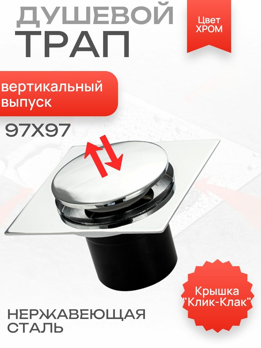 Трап нажимной, выход 50 мм вертикальный, литая крышка, из нержавеющей стали, цвет хром. информация: