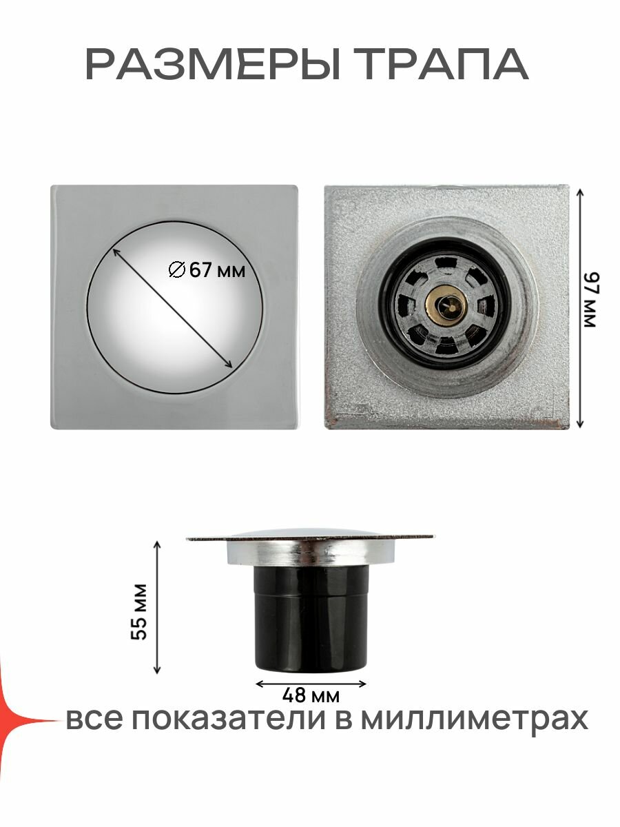 Отзывы на Трап нажимной, выход 50 мм вертикальный, литая крышка, из нержавеющей стали, цвет хром.