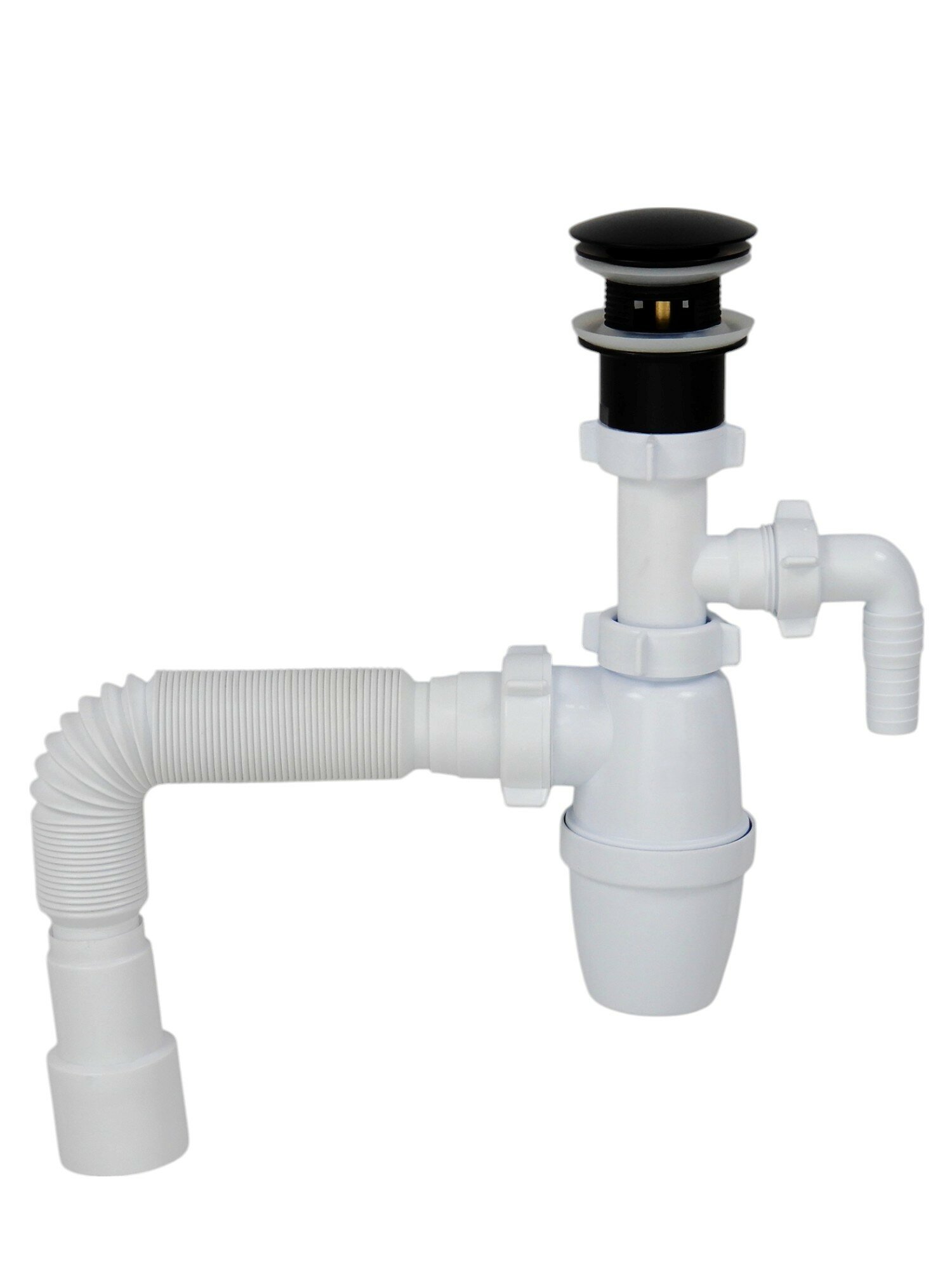 Отзывы на Сифон для раковины с отводом для стиральной машины и донный клапан с переливом черный КН251