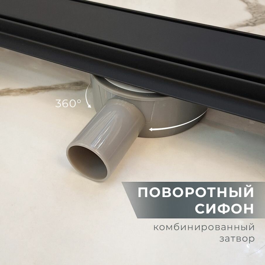 AltroBagno Душевой трап под плитку с комбинированным затвором (сухой + гидрозатвор) 600 мм, черный матовый информация: