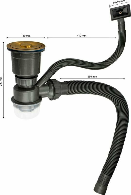 FABIA PROFI - Сифон для мойки, большая горловина с переливом золото, с отводом под сливной шланг и со сьёмной корзинкой для мусора информация:
