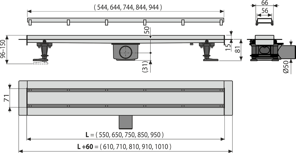 Душевой лоток Alca Plast AlcaPlast APZ1106-550 Душевой лоток Professional, нержавеющая сталь