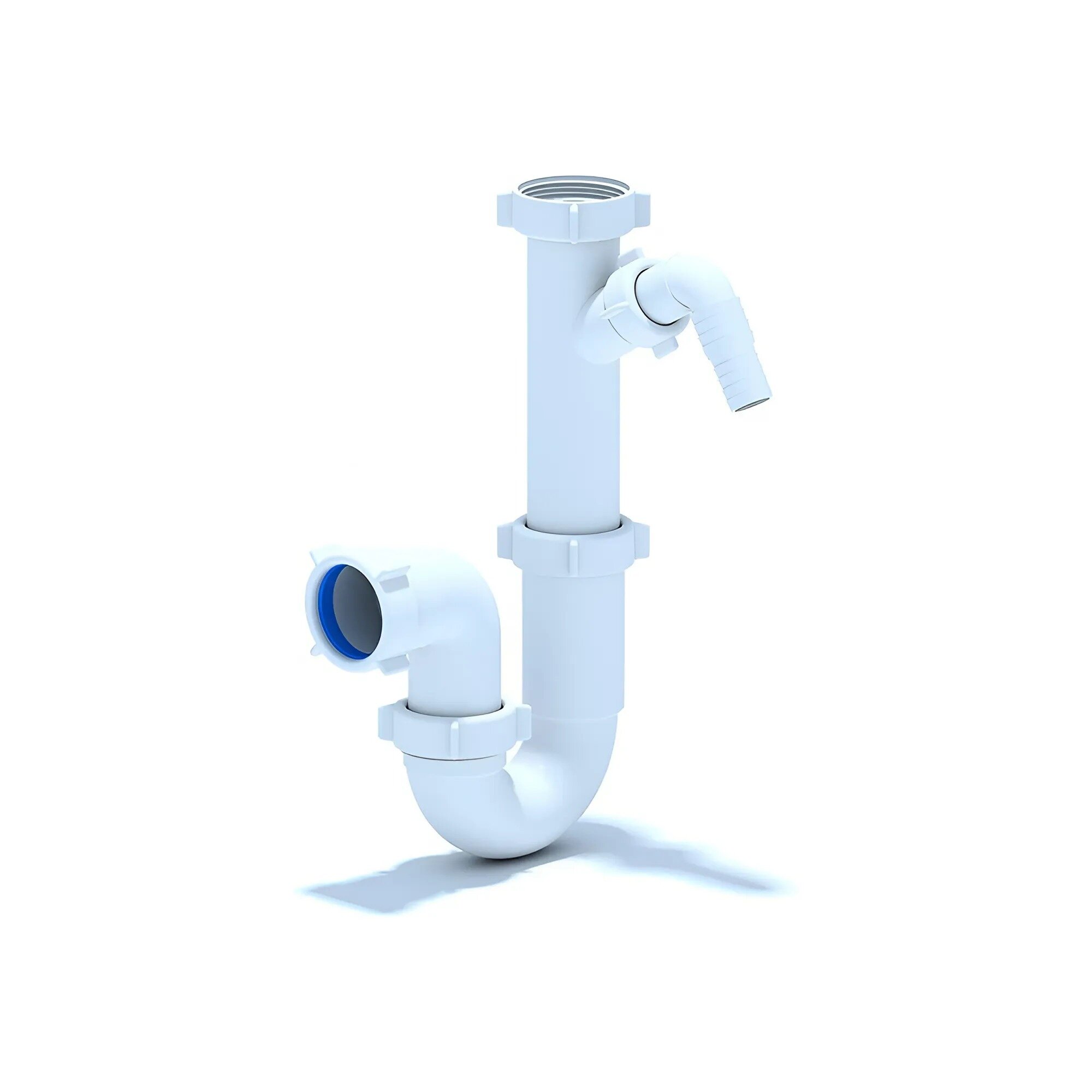 Сифон для мойки большая горловина с переливом, с отводом под сливной шланг и со съёмной корзинкой для мусора