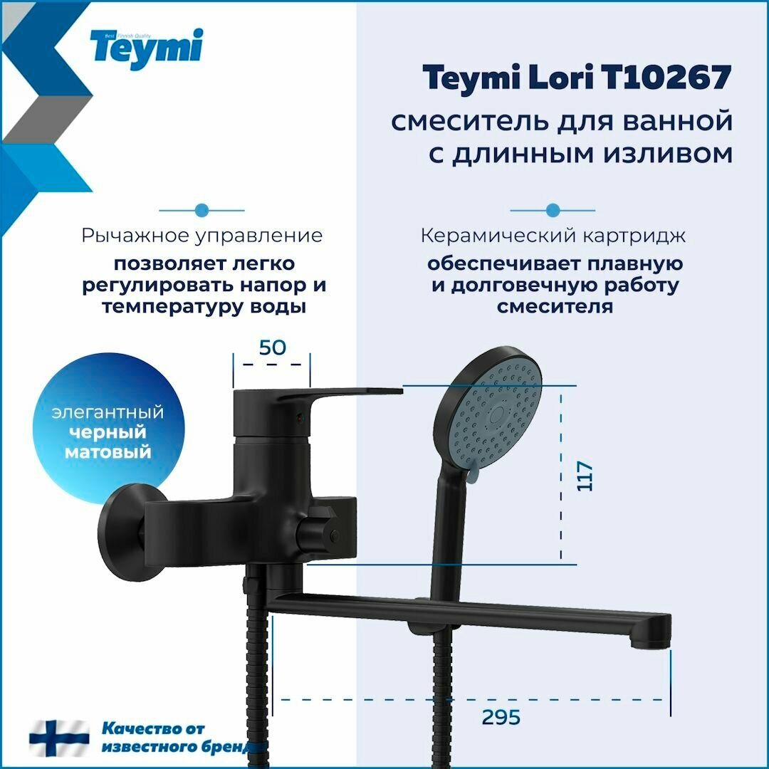 Смеситель для ванной с длинным изливом черный матовый Teymi Lori T10267 информация: