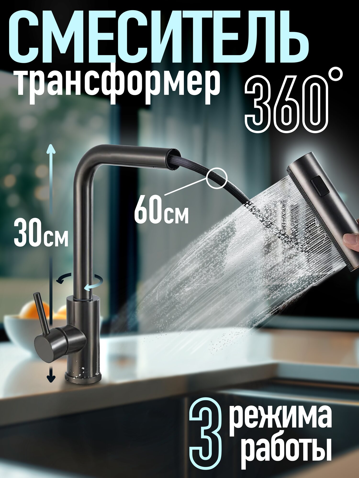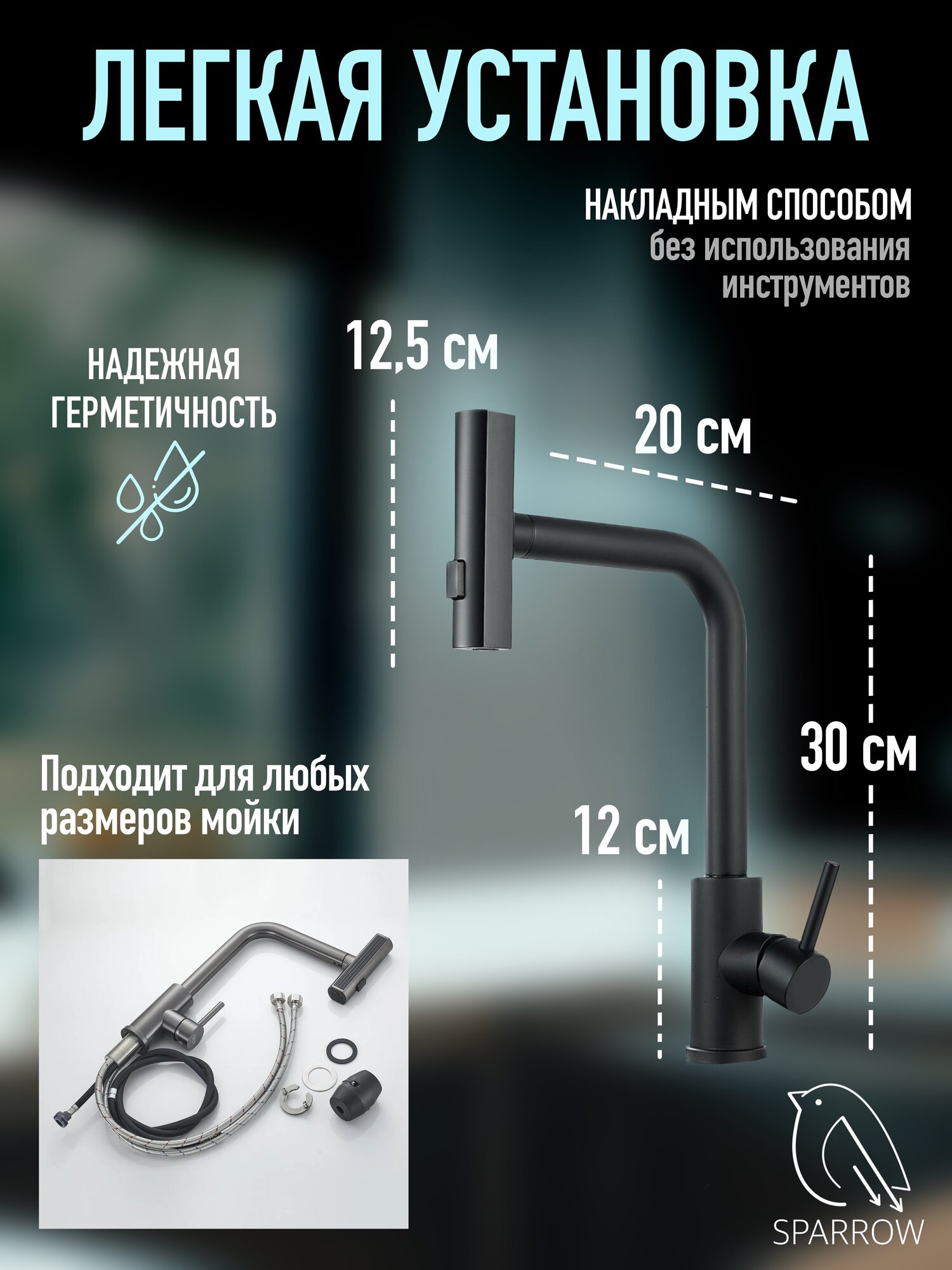 Смеситель для раковины с выдвижным гибким изливом черный информация: