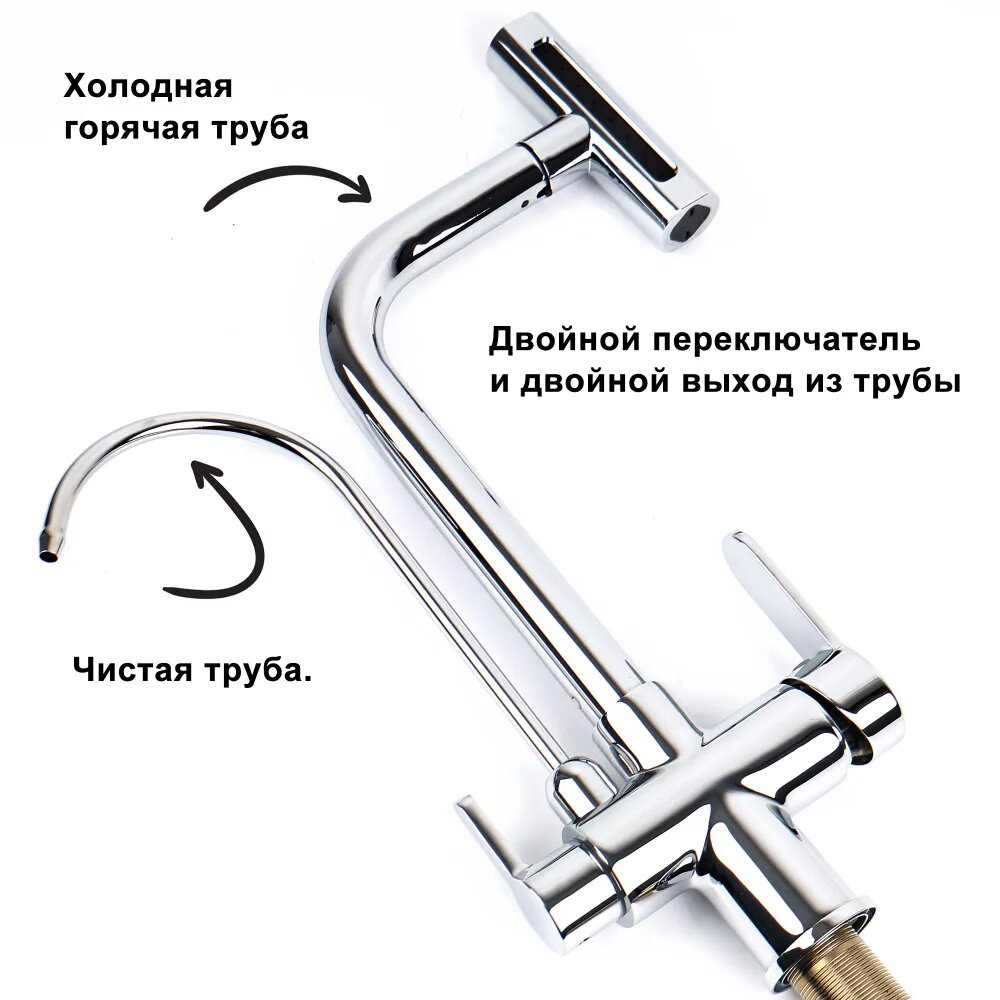 Смеситель для кухни с подключением к фильтру с питьевой водой из нержавеющей стали SUS304 Calorie CAL50116-3