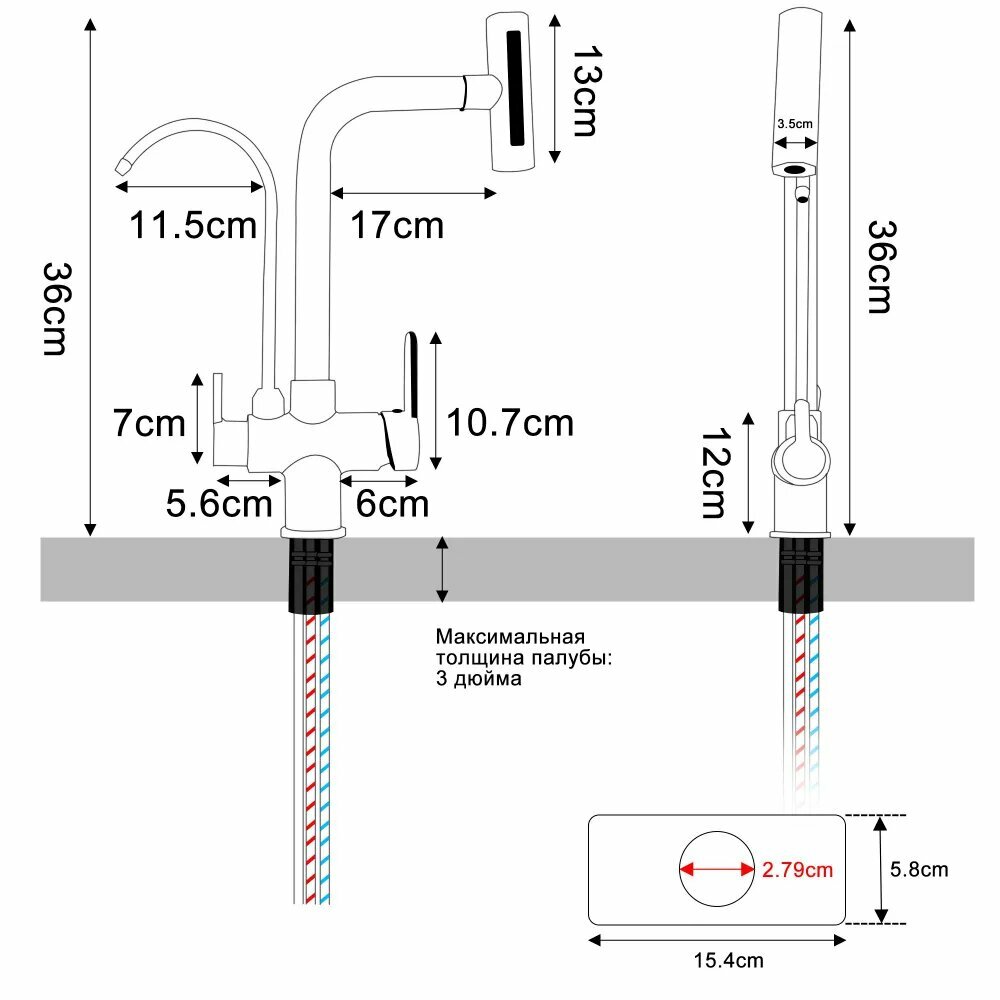 Смеситель для кухни с подключением к фильтру с питьевой водой из нержавеющей стали SUS304 Calorie CAL50116-3