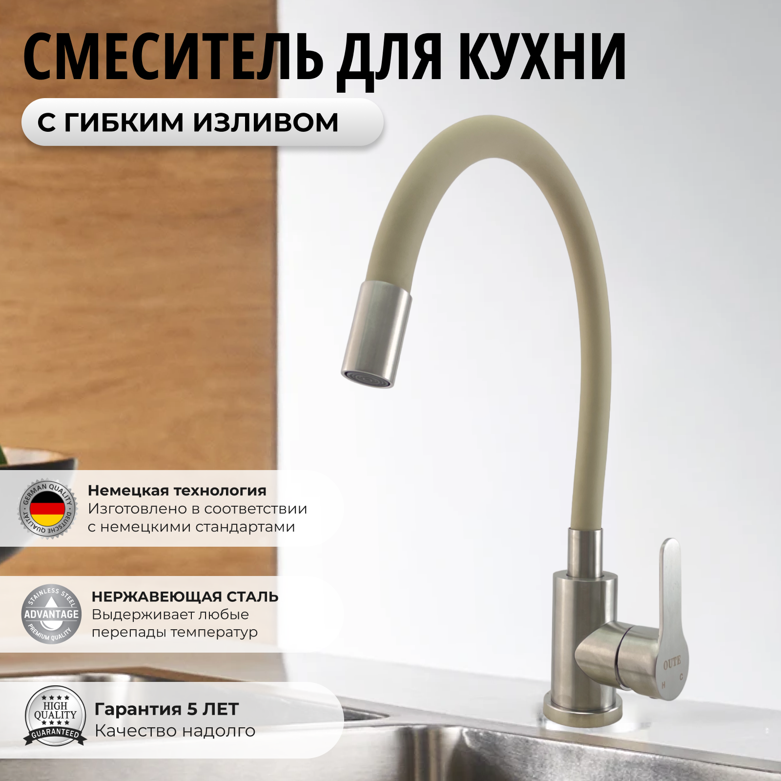 Смеситель для кухни с гибким изливом бежевый нержавеющая сталь информация: